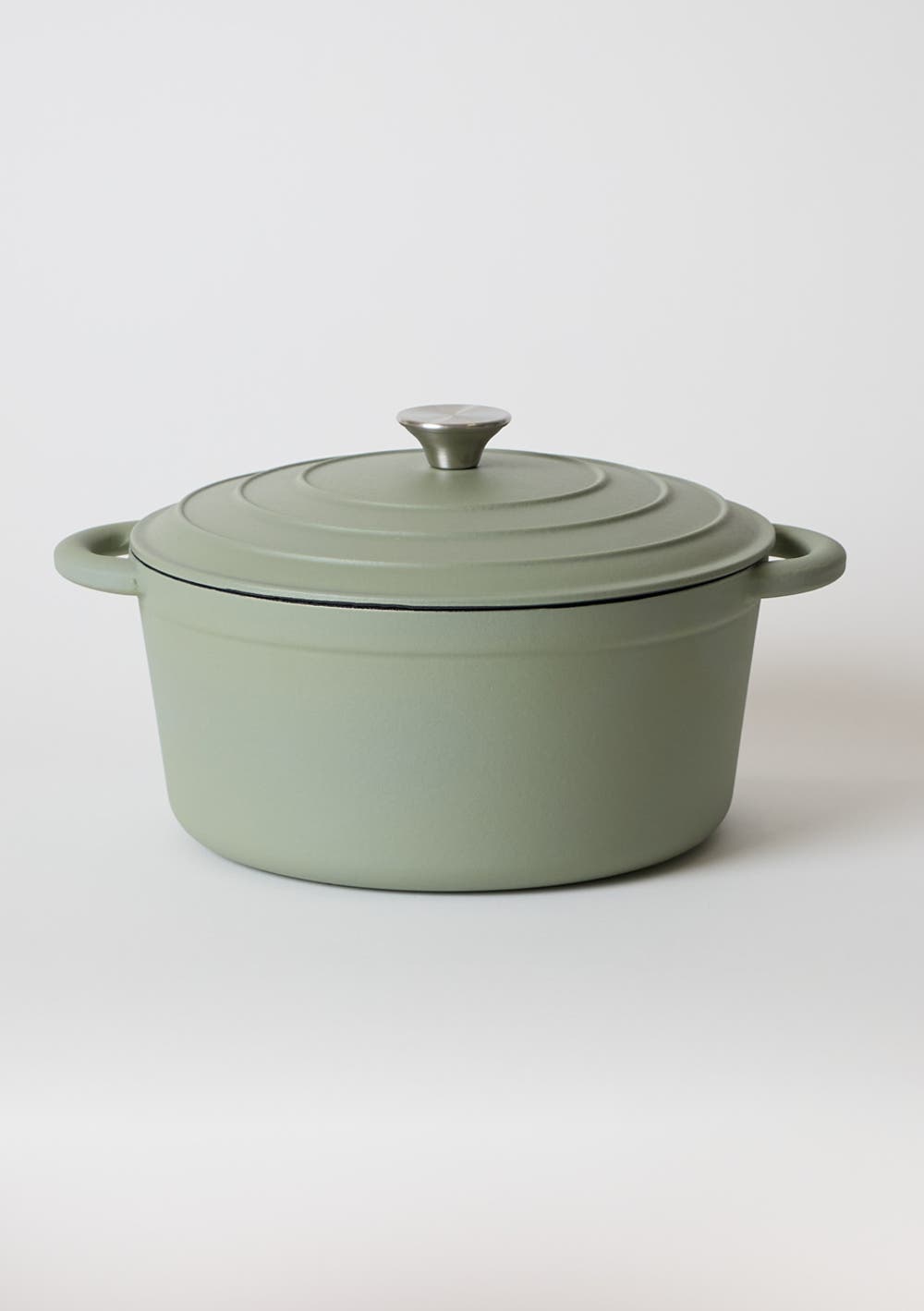 George Collective - Cast Iron Round Casserole 28cm - Matte Sage/Silver LidPREORDER