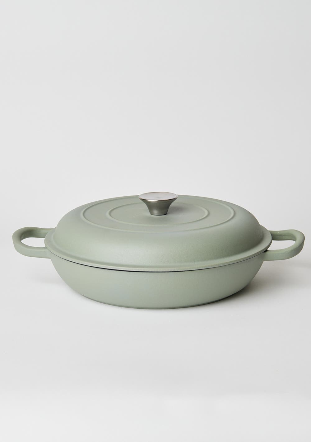 George Collective - Cast Iron Shallow Casserole 30cm - Matte Sage/Silver LidPREORDER