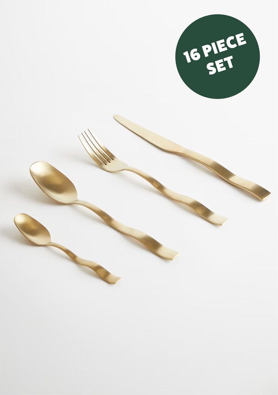 George Collective - Wavy Cutlery Set 16 Piece - Brushed Gold