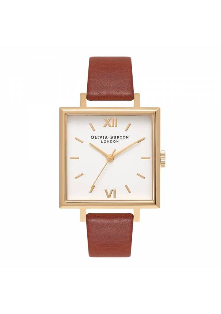Olivia Burton Big Dial Square Collection Gold Case Tan Strap