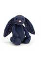 Bashful Stardust Bunny is a shy little sweetheart with yummy-soft midnight fur. Flopsy and gentle in deep navy blue, this bobble-nosed bunny loves bedtime so much. With sparkling ears full of twinkling silver stars, Bashful Stardust Bunny is a dreamy buddy.
