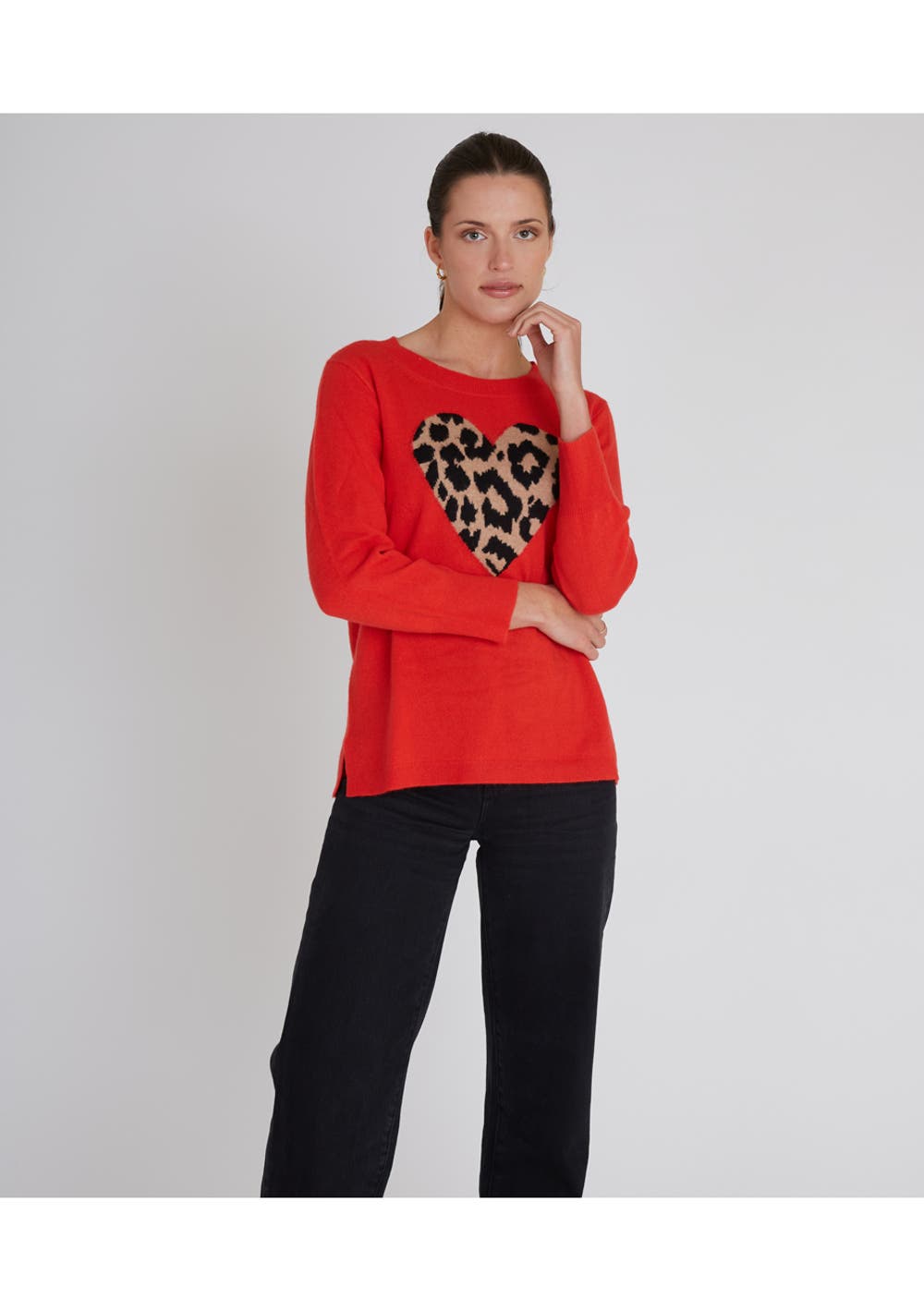 J Crew - Womens Leopard Heart Cashmere Crew Sweater