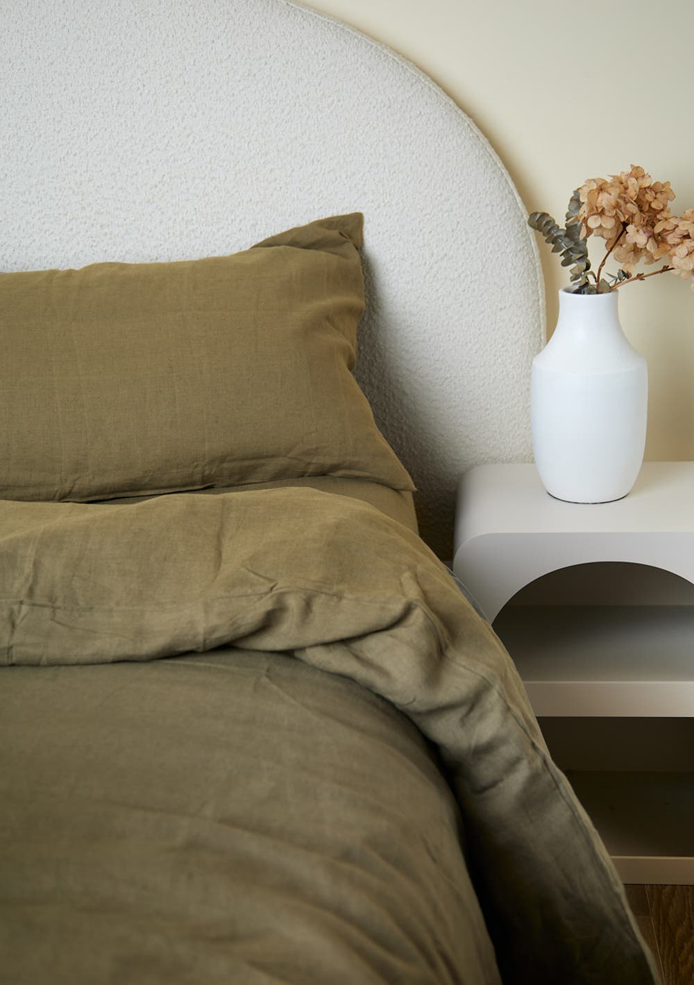 Linen’s charm only grows with time; with each use and wash, becoming more softer and luxurious. Additionally, linen boasts practical benefits, including anti-static, anti-bacterial properties and natural temperature regulation for your comfort.
