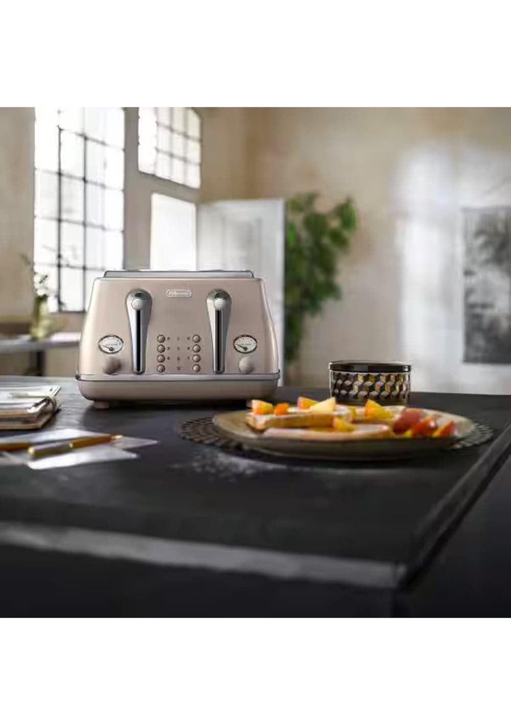 DeLonghi Icona Metallics 4 Slice Toaster, Beige, CTOT4003BG