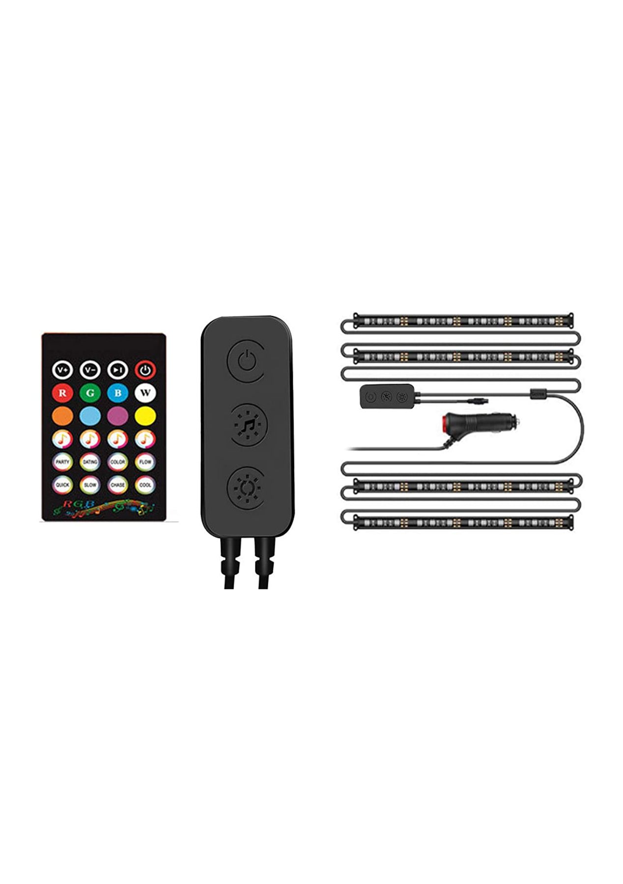 Product Description:This strip light comes with three control methods- remote control, APP, and comes with a controller. It comes with its own remote and can also be controlled by your mobile phone. You can download an App and change the colors, brightness, and music mode with your phone.The LED strip lights support a music sensor which enables it to change the colors following the beat of music due to the high sensitivity mic. You can customize your own unique color modes to perfect enhancement for upgrading your car.This interior light comes with strong adhesive strips. The two lines connect with four strip lights, making it easy to install and hide, keeping your car clean and tidy. The longer wires can be installed inside or outside the car or installed in the bumper, air intake shed cab, rear, and bottom.You can mix and match, DIY colors with its over 16 million colors and different tones for selection, you can customize your own unique color modes to perfect enhancement for your car.?Product Specification:Color: RGBMaterial: LED, PVCSingle light strap size: 22*1.2cmWeight: 125gFunctions: Car Light BarPower Supply: USB Plugged-in, Car PlugPower: 3WInclude 12 beads for each light strapLamp bead brightness: 18-20lmWorking voltage: DC12V/USB5V?Package Inclusion:Car Plug:4 * Car Light Bar1 * Bluetooth Controller and Car Plug1 * Remote Control1 * set Cable Ties?USB Plug:4 * Car Light Bar1 * Bluetooth Controller and USB Cable 1 * Remote Control1 * set Cable Ties ?