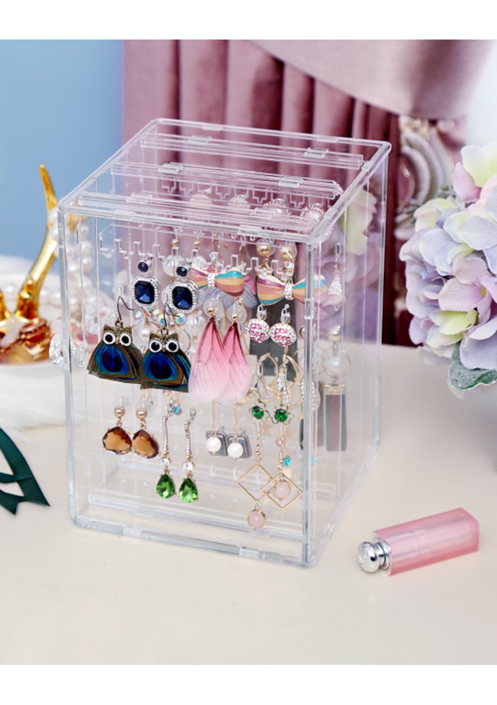 Contains 3 panels and each panel has 74 holes. So it can hang 37 pairs of earrings in each panel. In total, the box has 222 holes and can hold 111 pairs of earrings.