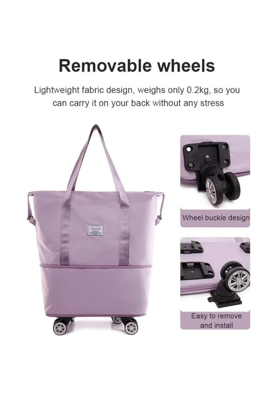 Expandable foldable duffel bag suitcase with Removable Wheels S -Purple