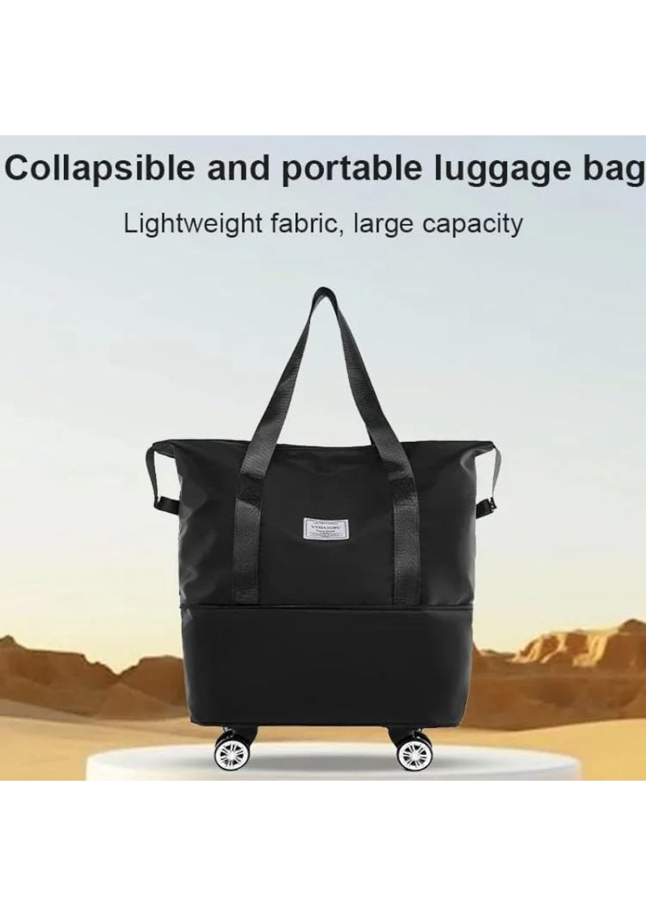 Expandable foldable duffel bag suitcase with Removable Wheels S -Black