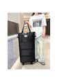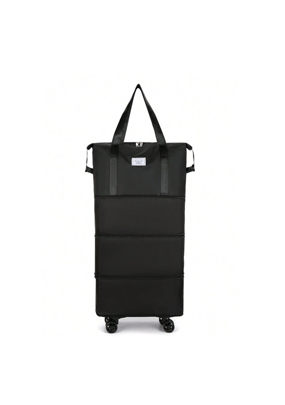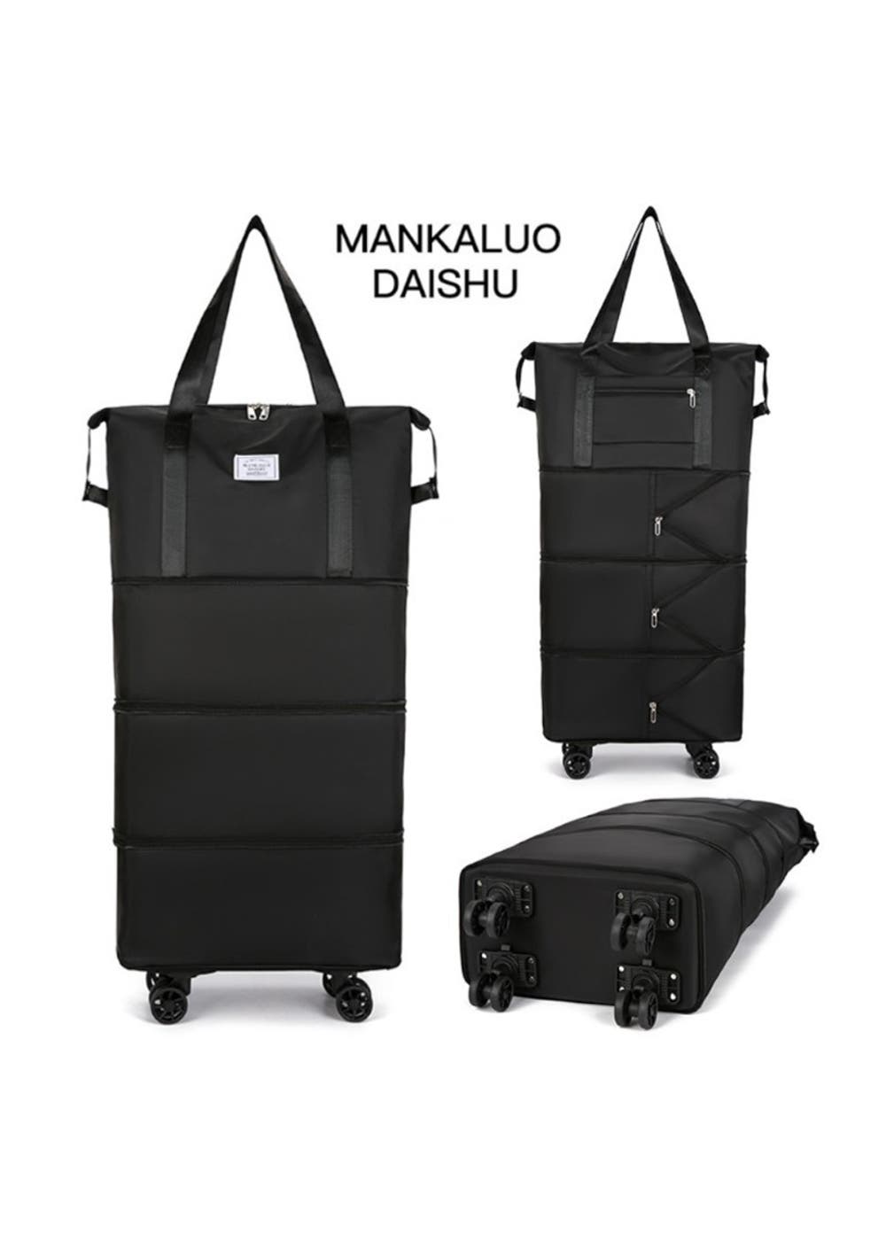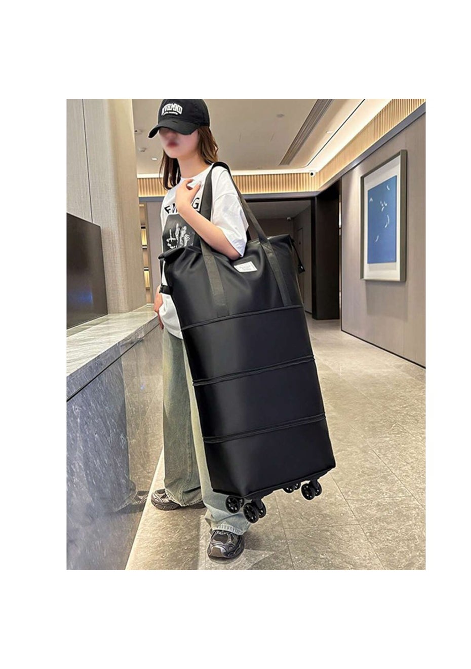 Expandable foldable duffel bag suitcase with Removable Wheels L -Black