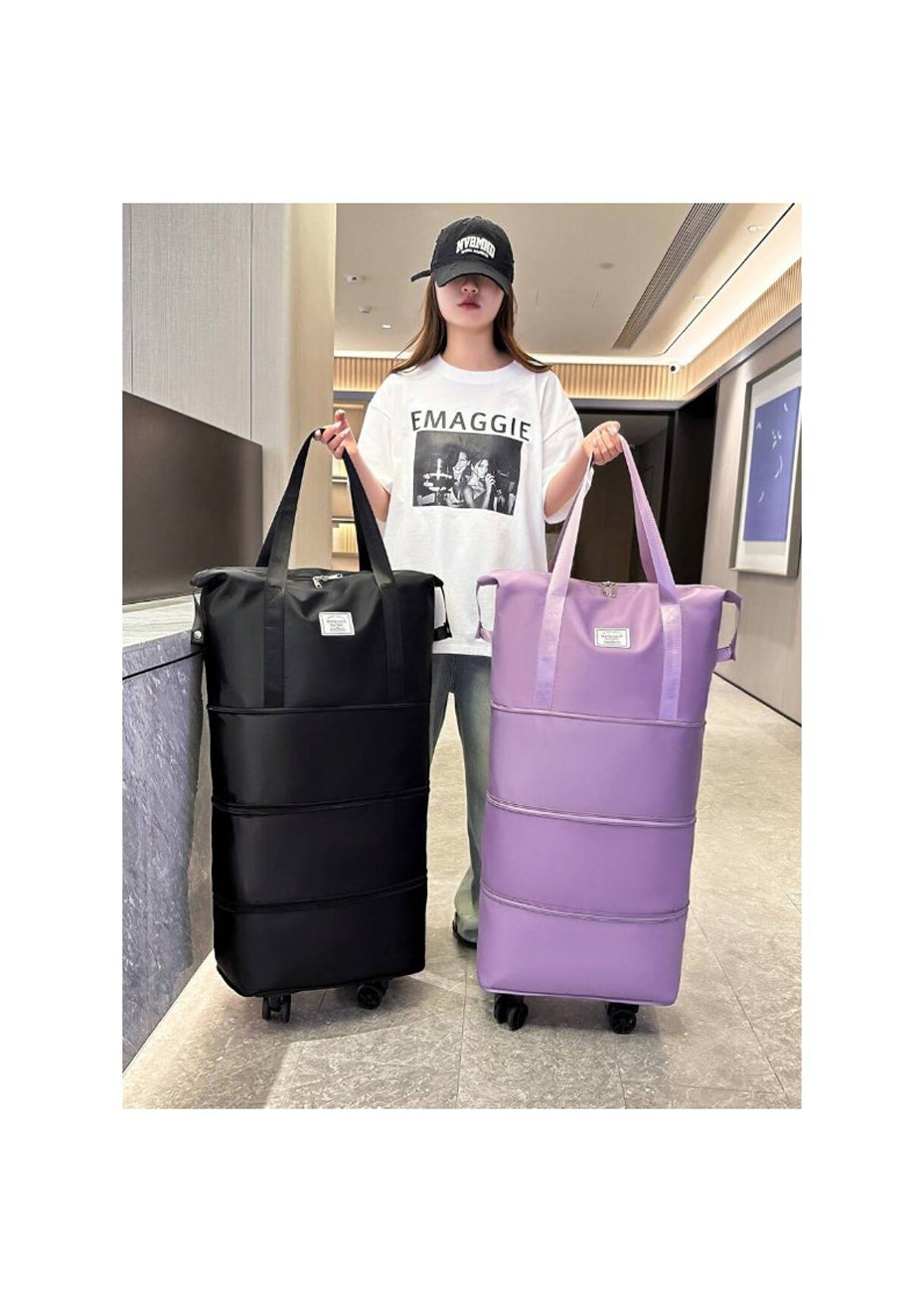 Expandable foldable duffel bag suitcase with Removable Wheels L -Purple