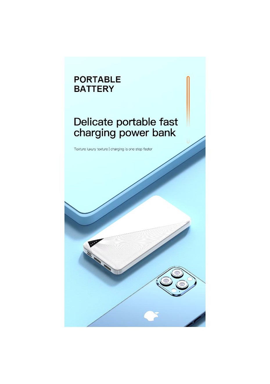 Portable Charger 10000mAh with 20W Power Delivery Product Details: Material: High-quality polymer battery shell Product Dimensions (LWH): 14x7x3 cm Package Dimensions (LWH): 21x11x3 cm Weight: 436 g Key Features: Fast Charging with 20W Power Delivery: Quickly charges your devices with advanced 20W power delivery technology, ensuring efficient power on the go. High Capacity: 10000mAh battery provides sufficient power to recharge smartphones, tablets, and other devices multiple times, perfect for travel or daily needs. Type-C Input Port: Equipped with a Type-C input for faster charging of the power bank itself, ensuring it’s ready when you need it most. Dual USB Outputs: Allows simultaneous charging of two devices with dual USB ports, making it convenient to share or multitask your charging needs. Portable and Safe Design: Compact, lightweight, and built with safety features like overcharge, overcurrent, and short-circuit protection to safeguard both your devices and the charger. Package Includes: 1 x Portable Charger 10000mAh 1 x Type A to Type C Charging Cable