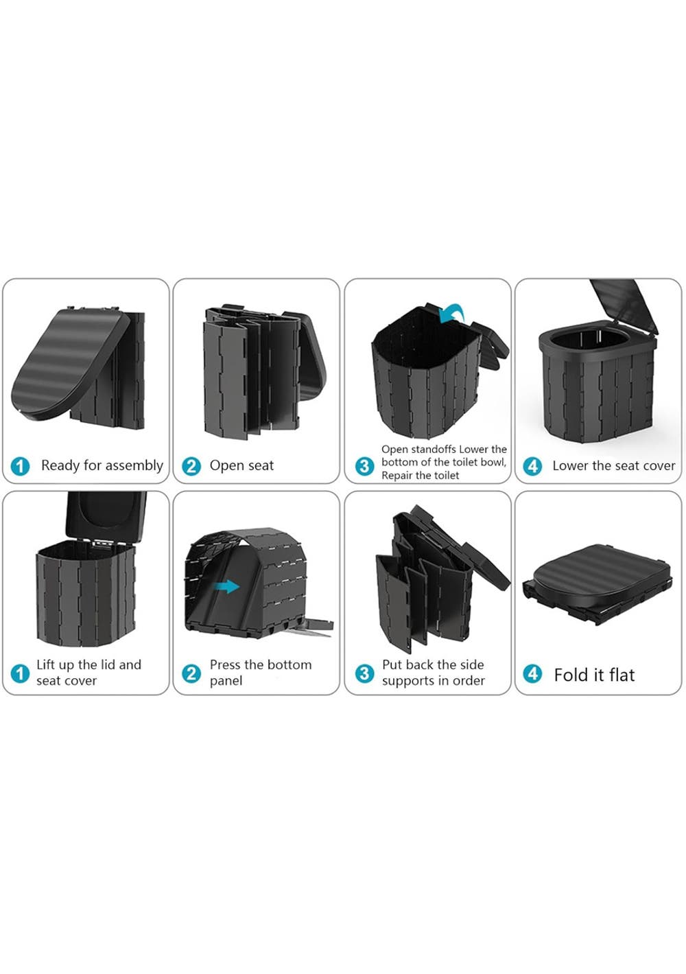 Suitable for adults, elderly, and children, it’s ideal for use during camping, traveling, or any situation without access to a regular toilet.