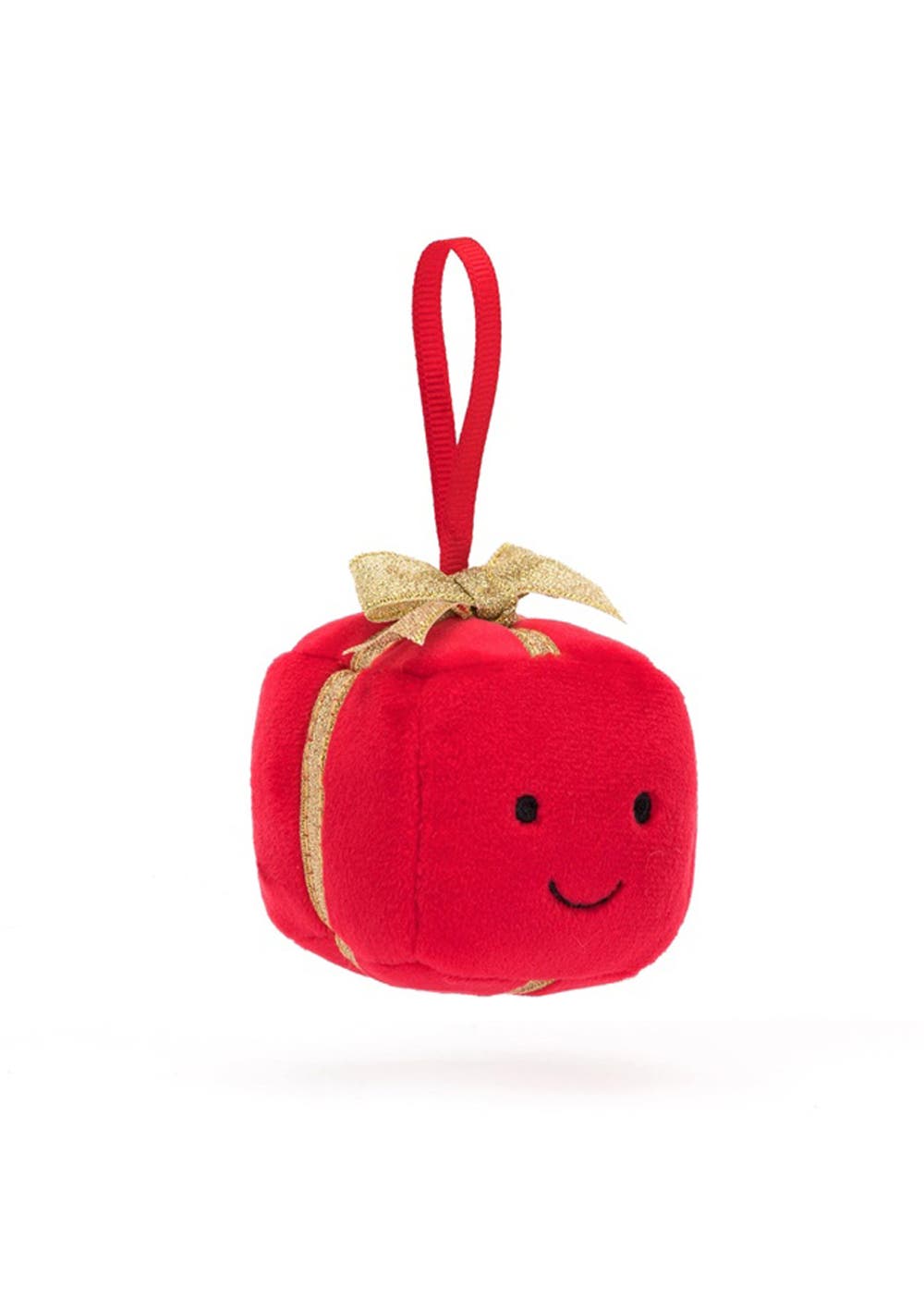 Festive Folly Present is all wrapped up and ready to impress – on the Christmas tree, that is! This scarlet gift is plump, jolly and full of promise, with a sparkling gold bow and red textured ribbon. A tiny hug is the best gift of all!