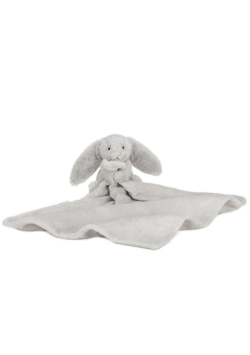 Scampering through the forest, you might just spot the Bashful Silver Bunny Soother. This scrummy-sweet bunny with flopsy ears looks after a soother just as soft as herself. Perfect for sleepyheads and tots on the hop - from buggy to cot, she's a bunny boo