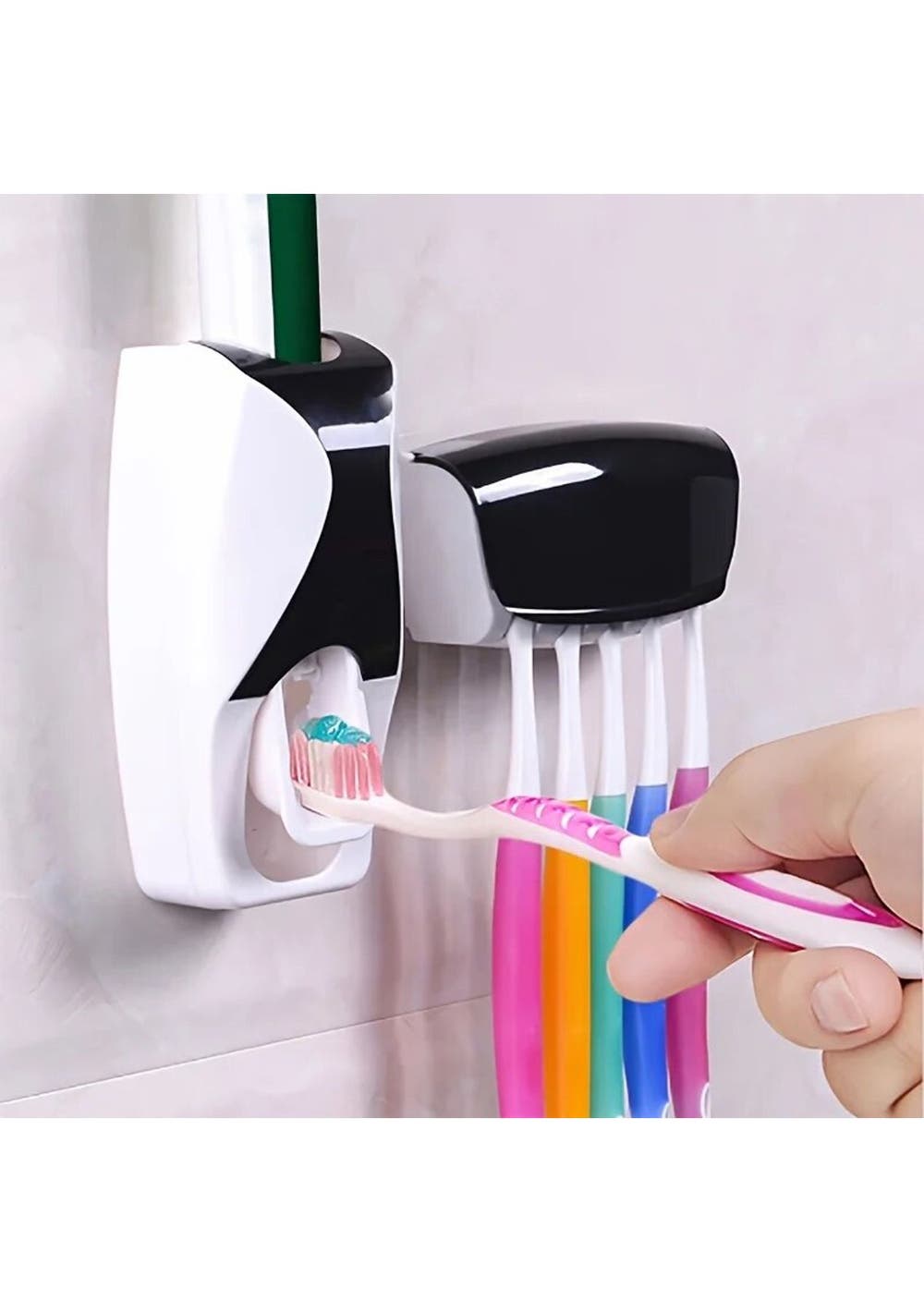 Product Description: This toothbrush holder features an automatic toothpaste dispenser, ensuring your toothpaste is always within reach and ready for use. No more squeezing and messy tubes, simply push your toothbrush against the dispenser and get the perfect amount of toothpaste every time.ÔªøThe wall mounted design saves valuable counter space, making it ideal for bathrooms of any size or shared spaces. Constructed from durable plastic, this toothbrush holder is designed to withstand daily use while still looking stylish.ÔªøInstallation is a breeze with all necessary mounting hardware included. ÔªøMade from high-quality materials, this bathroom accessory set is built to last. Its versatile design makes it suitable for families, hotels, dormitories, and more.Product Specification: Material: Plastic Color: Blue, Black, Pink Weight: 165g Storage Rack Size: 7cm*4cm*14.8cm Squeezer Size: 6.2cm*4cm*13cm Function: Toothbrush Storage Rack with Squeezer Package Inclusion: 1 x Toothbrush Holder 1 x Toothpaste Dispenser