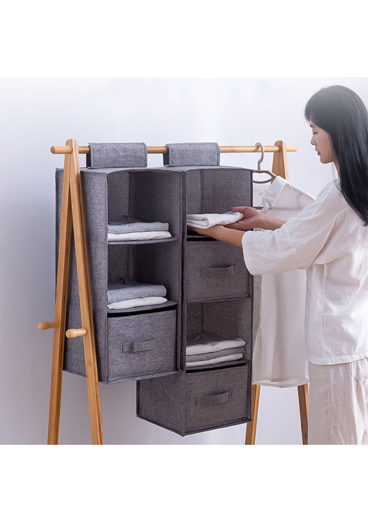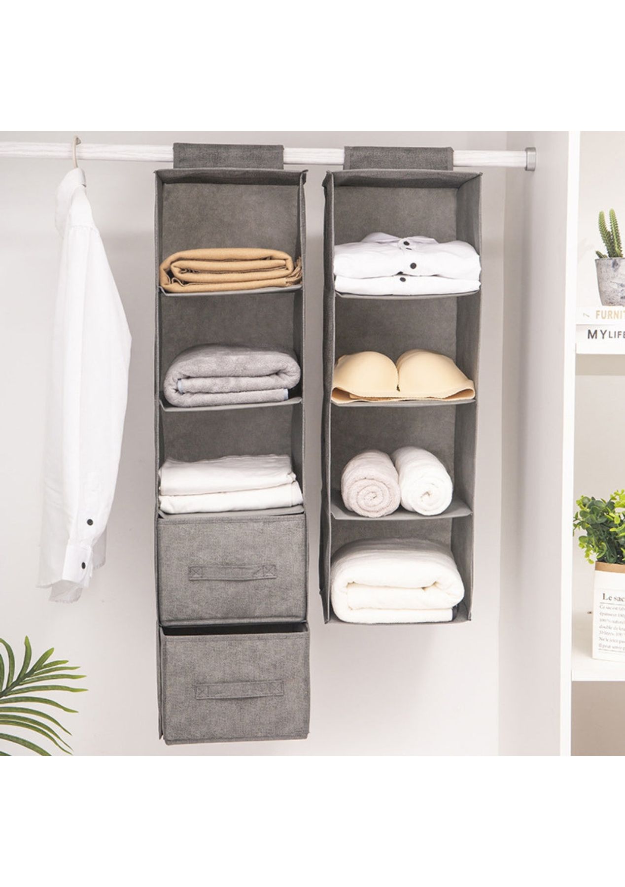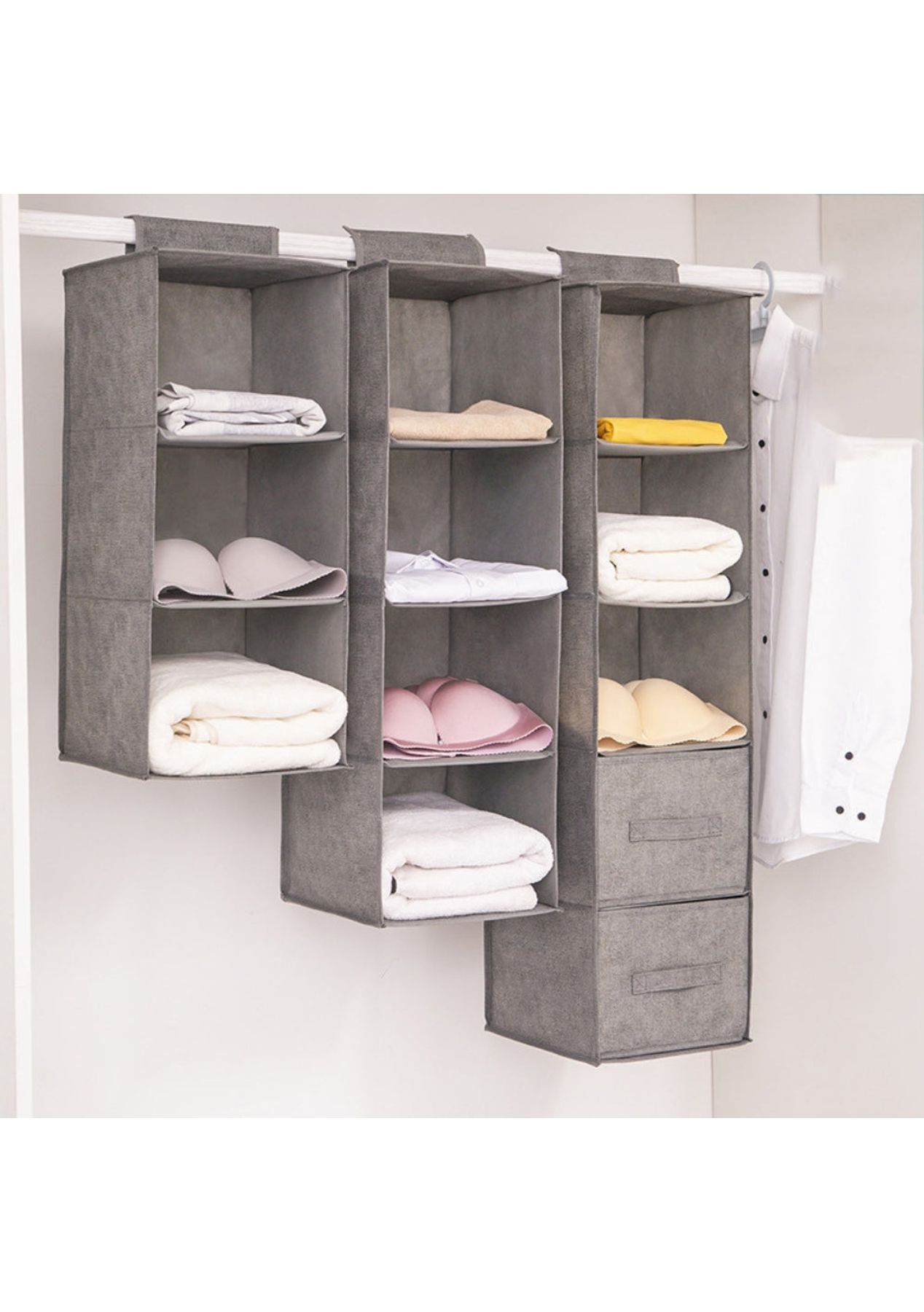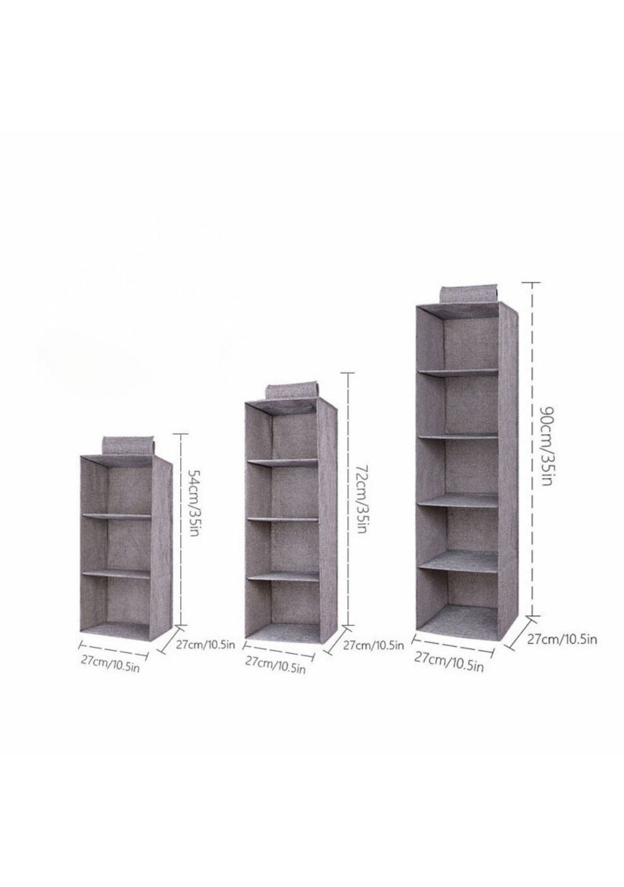 Product Description: The Portable Wardrobe Hanging Storage is the ideal solution for organizing and decluttering your living space. Crafted from high-quality non-woven fabrics, this storage organizer is both durable and easy to clean, making it perfect for everyday use. Its compact and sleek design fits seamlessly into walk-in closets, wardrobes, or even drawers, helping you maximize your available space while keeping your belongings neatly arranged. This hanging storage unit is designed to be versatile and functional, offering ample space for storing various items such as sweaters, hats, accessories, and more. The durable polyester material ensures that the organizer can withstand daily wear and tear, making it a long-lasting addition to your home. With its easy-to-hang design, you can attach it to any clothes rail or mesh rack for convenient access to your favorite items. One of the key features of this organizer is its foldable design, allowing you to easily store it away or take it on the go. When not in use, simply fold it up to save space, making it perfect for travel or seasonal storage. Its lightweight yet sturdy construction ensures it can hold heavier items without sagging, providing reliable support for all your wardrobe essentials. Whether you need extra storage in the bedroom, bathroom, laundry room, or utility room, the Portable Wardrobe Hanging Storage is a versatile and space-saving option. Its large compartments offer plenty of room to organize your belongings efficiently, helping you create a clutter-free and well-organized space in any room of your home.Product Specification:Material: Polyester Color: Grey 3 layer Size: 54 x 27 x 27 cm 4 layer Size: 72 x 27 x 27 cm 5 layer Size: 90 x 27 x 27 cm Weight: 200 g Function: Hanging Closet OrganizerPackage Inclusion:1 x Storage Bag