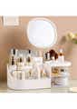 Product Description: The Cosmetic Storage Box with Clear Drawer is the perfect addition to your vanity or bathroom counter, offering both functionality and elegance. Designed with 2 transparent drawers and multiple compartments, this makeup organizer ensures your daily essentials are always within easy reach. Its sleek and stylish appearance makes it a standout feature in any room, adding a touch of sophistication to your space. With its large capacity, the Cosmetic Storage Box provides ample room for organizing makeup, skincare products, brushes, and jewelry. The total size includes 6 compartments, 2 clear drawers, and a round tray, making it easy to store a variety of items while keeping everything neatly arranged. Whether it's perfume, lipsticks, or accessories, this organizer will help you declutter your space and keep all your essentials in one place. This multi-purpose organizer is not limited to cosmetics. It can also be used for organizing office supplies, stationery, or small household items. Its versatility allows you to place it in any room, making it a practical storage solution for your desktop, dresser, or bathroom. Its thoughtful design makes it a go-to organizer for maintaining a tidy and orderly space. Elegant and practical, the Cosmetic Storage Box is also an ideal gift for friends and family. Its beautiful design and functionality make it a thoughtful present for special occasions like birthdays, weddings, or holidays. Give the gift of organization and style with this charming cosmetic storage organizer.Product Specification:Material: Plastic Color: Pink, White, Milk White Size: 33.5 x 19 x 12 cm Weight: 460 g Function: Cosmetic Storage Box Package Inclusion:1 x Cosmetic Storage Box with Clear Drawer