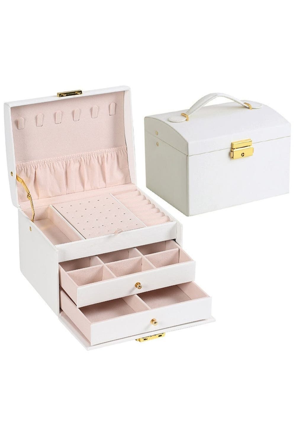 Product Description: The Exquisite Three-Layer Jewelry Box is designed to provide maximum storage and organization for all your favorite accessories. Made from high-quality leather, this jewelry box features a three-layer design, offering ample space for earrings, rings, bracelets, and more. The secure locking mechanism ensures that items remain safe, preventing any unauthorized access, while the elegant drawer-style design adds sophistication to your collection. This versatile box is perfect for storing all kinds of jewelry, watches, and other small accessories. The three-layer design allows for easy organization, keeping everything neatly arranged and easily accessible. The box is available in four beautiful colors, allowing you to choose the one that best fits your style. Included in the package is the Exquisite Three-Layer Jewelry Box, accompanied by a PE transparent bag and a white box for packaging, making it an excellent gift option for special occasions. Whether for birthdays, anniversaries, or holidays, this jewelry box is a thoughtful choice that will delight anyone who receives it. Take care of your jewelry and keep it shining like new with the Exquisite Three-Layer Jewelry Box. Simply wipe it gently with a soft cloth for a beautifully organized collection every time. Order now and elevate your jewelry storage experience with elegance and style.Product Specification:Material: Leather Color: Black, White, Green, Pink Size: 17.5 x 14 x 11-13 cm Weight: 700 g Function: Jewelry Box Package Inclusion: 1 x Exquisite Three-Layer Jewelry Box 1 x PE transparent bag 1 x White box for packaging