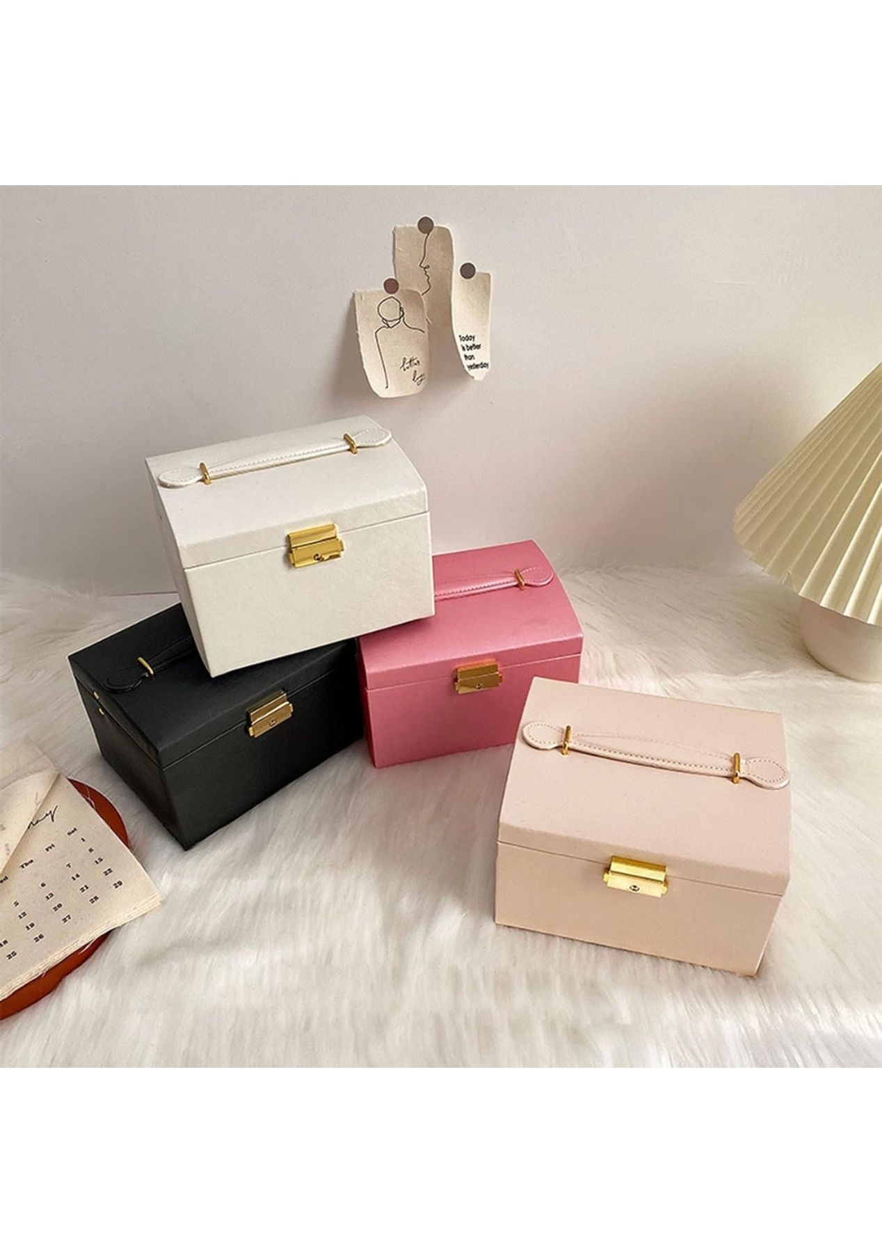 Multi Functional Three Layer Leather Drawer Style Jewelry Box Earrings Earrings Lock Jewelry Box - Pink