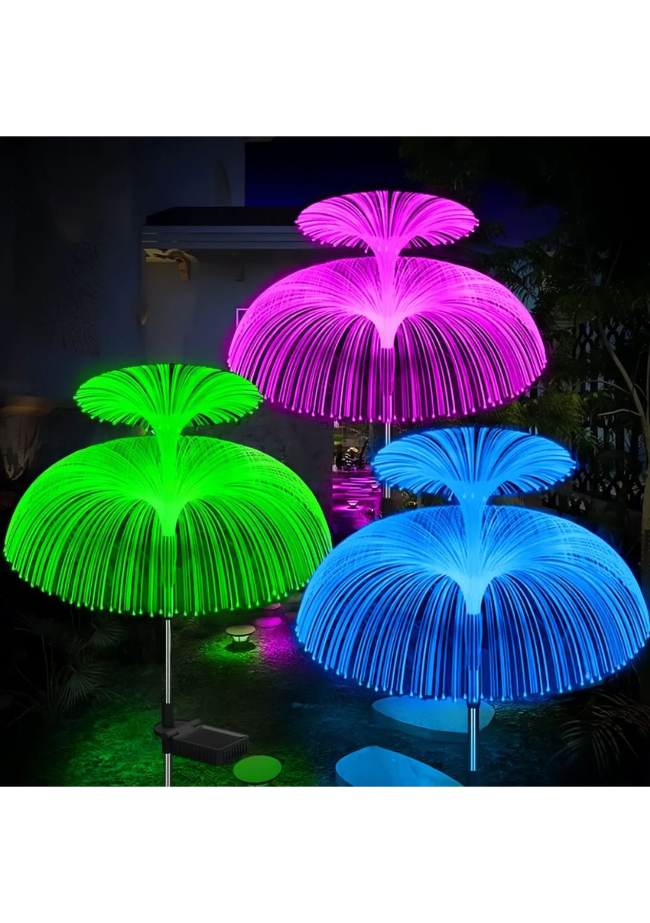 Product Description:The Outdoor LED Solar Pathway Lights is designed to bring vibrant color and unique style to your garden or patio. These waterproof jellyfish-shaped lights automatically change between seven colors, adding a whimsical glow to your outdoor space.Powered by solar energy, they are eco-friendly and require no wiring or batteries. Built for durability, they are weather-resistant and perfect for pathways, walkways, and lawns, making your yard stand out day and night.With their easy installation and solar-powered functionality, these lights provide hassle-free ambiance for your outdoor area. Enjoy a charming and energy-efficient solution for illuminating your garden.Perfect for any occasion, these jellyfish garden lights are both decorative and functional, creating a magical atmosphere in your yard.Product Specification:Material: ABS+PCColor: RGBSize: 37.3 x 37.3 x 73.9cm / 14.7 x 14.7 x 29.1inWeight: 0.12gCharging Time: 4-8 hoursProtection Level: IP65Voltage: 1.2VSolar Battery: 600mAhSolar Cell Type: Ni-MHWorking Time: 6-12hoursPower Source: SolarFunction: Solar lightPackage Inclusion:1 x Solar Jellyfish Lights
