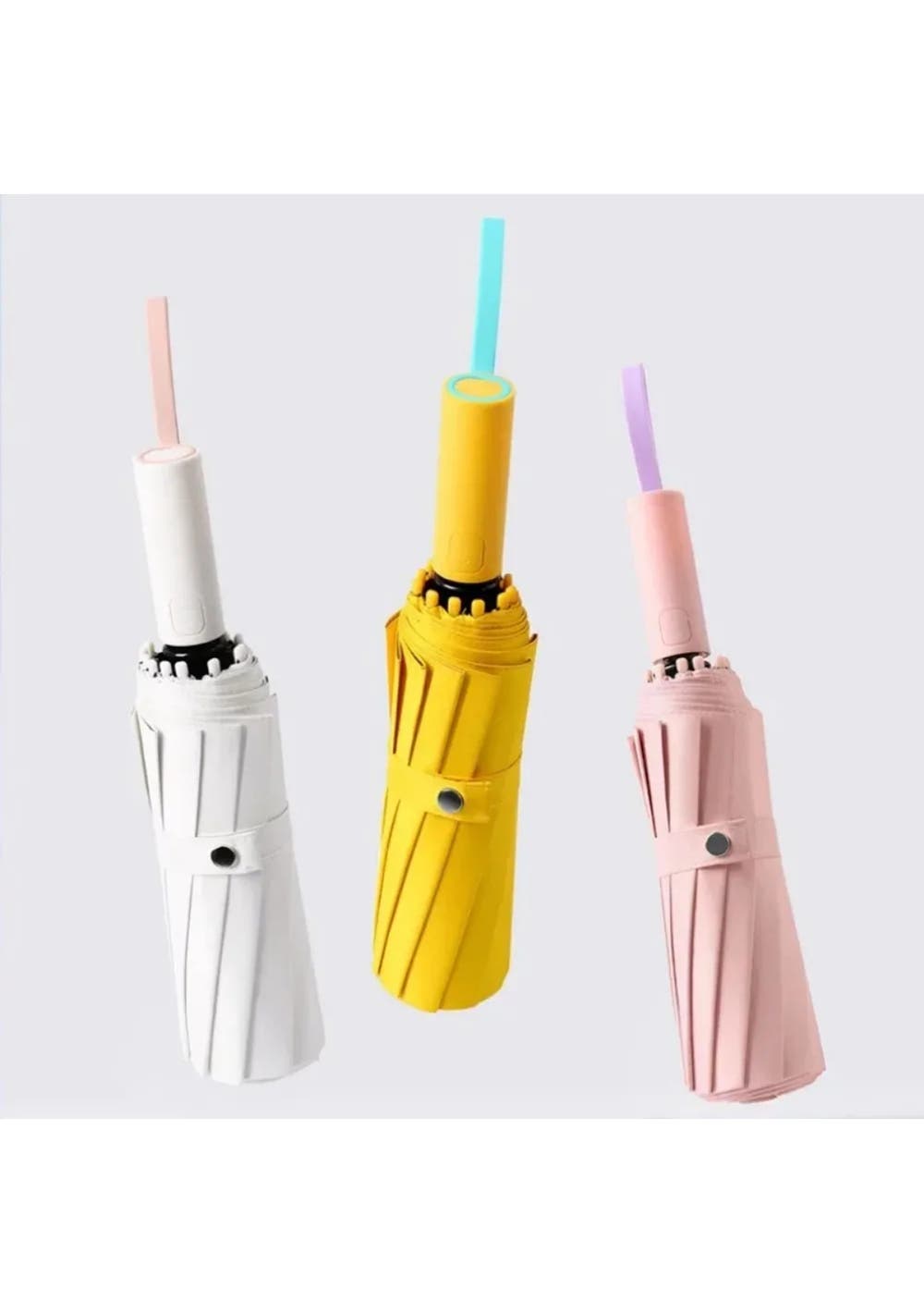 Product Description:This travel umbrella features a UV coating that blocks harmful rays, ensuring excellent protection against the sun's ultraviolet radiation.Crafted with high-quality materials, this small travel umbrella is both lightweight and exceptionally durable, capable of withstanding strong winds and heavy rain.Made with a durable polyester fabric, this umbrella is highly water-resistant, allowing raindrops to roll off smoothly and repelling dirt.With 72 reinforced fiberglass ribs, including 12 steel alloy ribs, this umbrella flexes slightly to withstand powerful gusts of wind.The all-metal frame, shaft, and 72 reinforced fiberglass ribs make this folding umbrella both sturdy and stylish, providing reliable weather protection for outdoor adventures.Designed for convenience, this mini sun umbrella is highly portable, fitting easily into bags or pockets, ensuring you're prepared for unexpected weather changes.This umbrella serves as both a sun umbrella and a rain umbrella, suitable for both men and women, making it an ideal accessory for various outdoor activities.With a simple push of a button, this umbrella automatically opens and closes, allowing for quick entry into cars, buildings, or tents with one hand. Product Specification:Material: Steel Bar + Glass Fib + 210T Black TapeColor: Yellow, Pink, BlueUmbrella Bone: 72 bonesCanopy Fabric: Double Layer Black PolyesterFolded Dimension: 32cmOpened Diameter: 105cmWeight: 557gFunction: 72 Ribs Anti-UV Sun Rain Automatic Umbrella Package Inclusion:1 x Umbrella