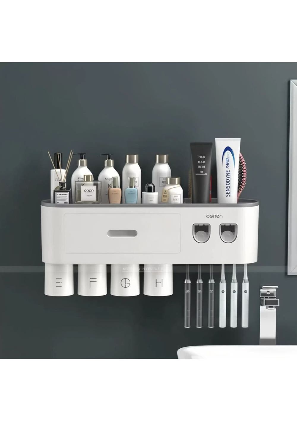 Smart Magnetic Inverted Toothbrush Holder with Automatic Toothpaste Squeezer - Grey