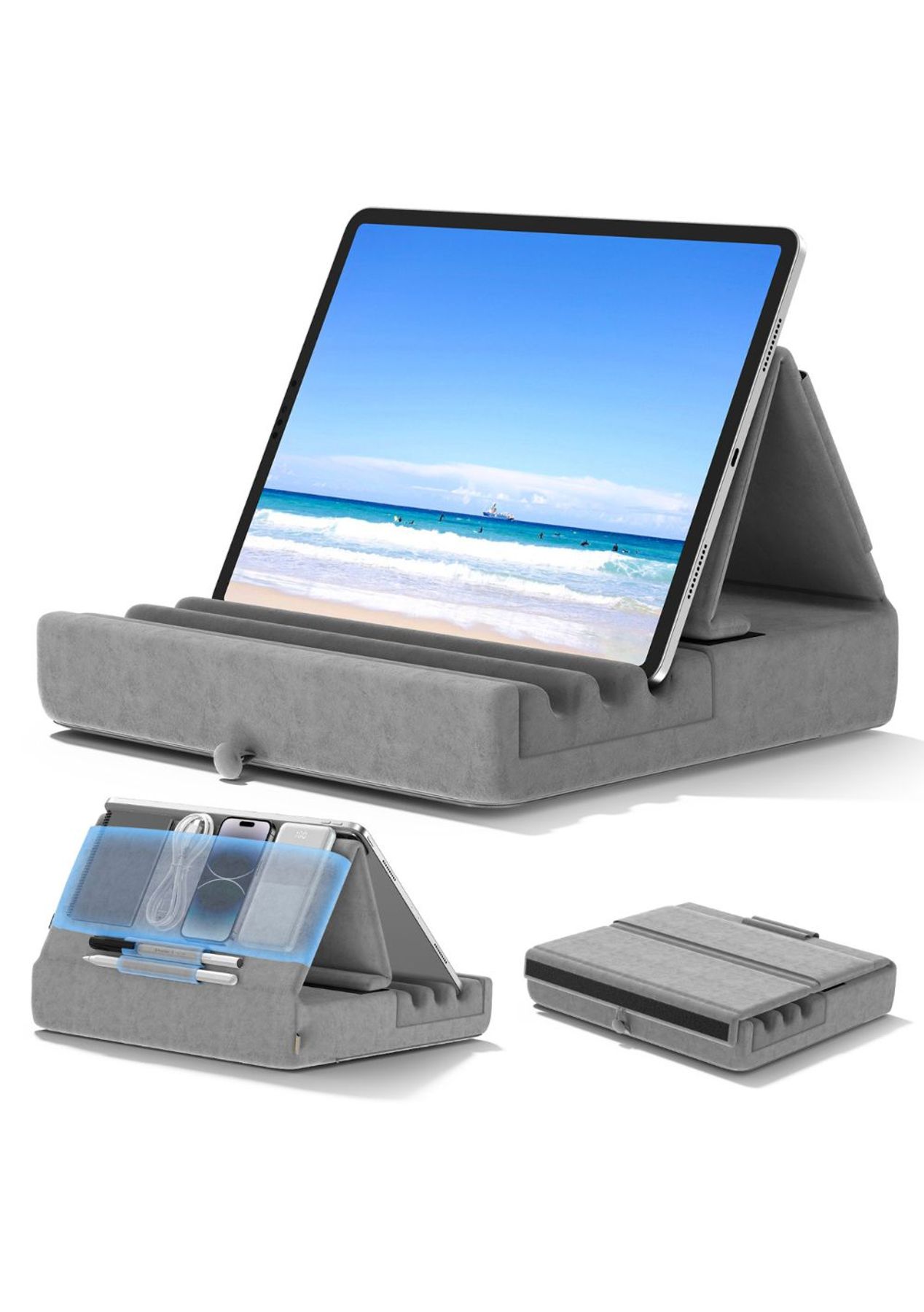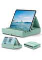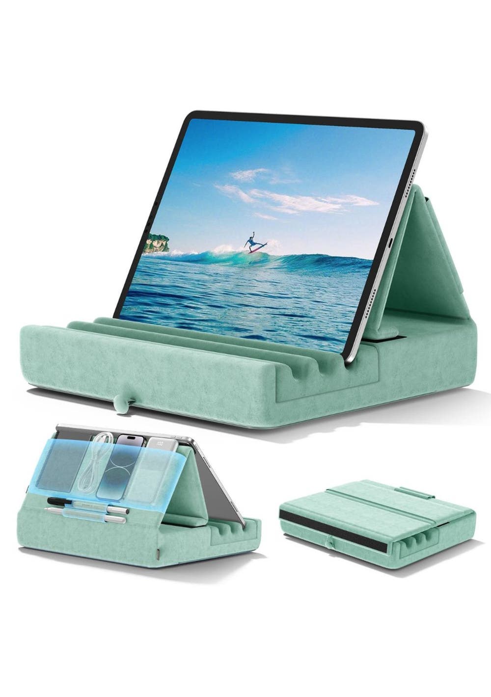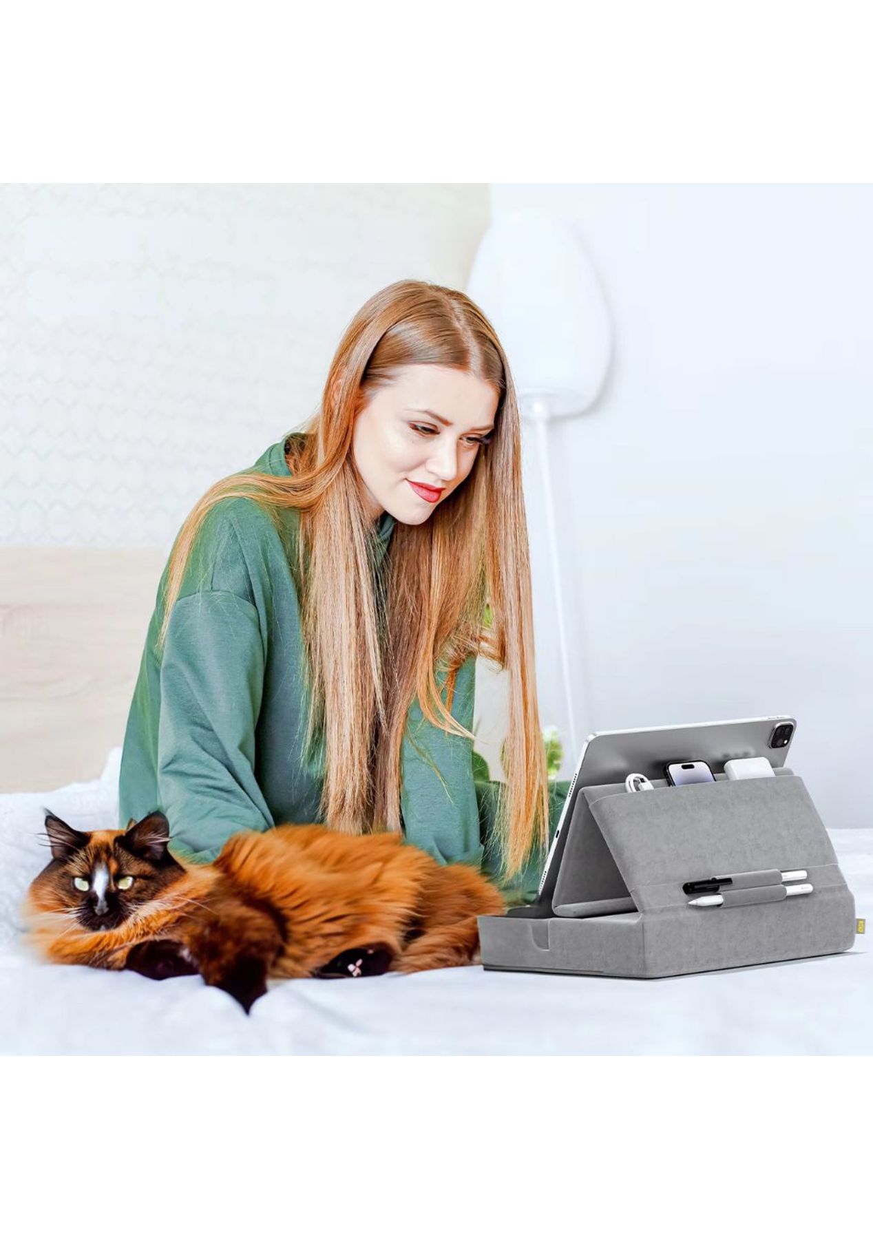 Product Description:The Tablet Pillow Holder offers a convenient and comfortable way to use your tablet on your lap, bed, or desk. Designed for versatility, this stand is foldable and lightweight, making it easy to take anywhere.With its soft pad dock, it provides a stable surface for your iPad Pro, ensuring a secure and ergonomic viewing angle. The built-in pocket offers space to store accessories, so everything you need is within reach.This holder also features a stylus mount, keeping your stylus secure and accessible at all times. Whether you're watching videos, reading, or working, it enhances your tablet experience by combining functionality with comfort.Perfect for home or travel, the KDD Tablet Pillow Holder is designed to enhance productivity and relaxation. It's an ideal companion for anyone seeking flexibility and ease while using their tablet.Product Specification:Material: PolyesterColor: Purple, Blue, Gray, GreenSize: 28.49 x 27.30 x 16.51cm / 11.22 x 10.75 x 6.5 inWeight: 0.49gFunction: Adjustable tablet standPackage Inclusion:1 x Tablet Pillow Stand
