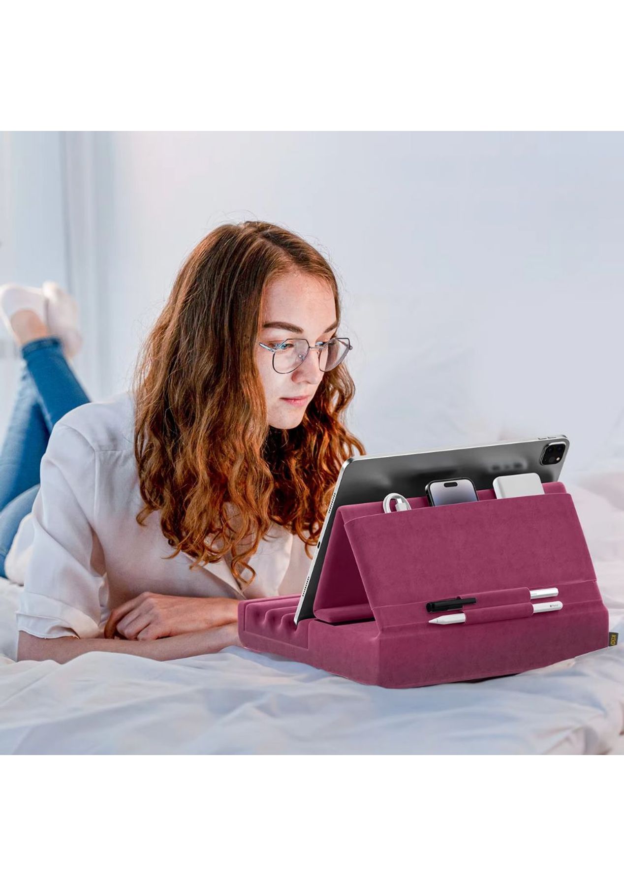 Tablet Pillow Stand Foldable Holder for iPad Pro with Soft Pad, Pocket and Stylus Mount - Purple