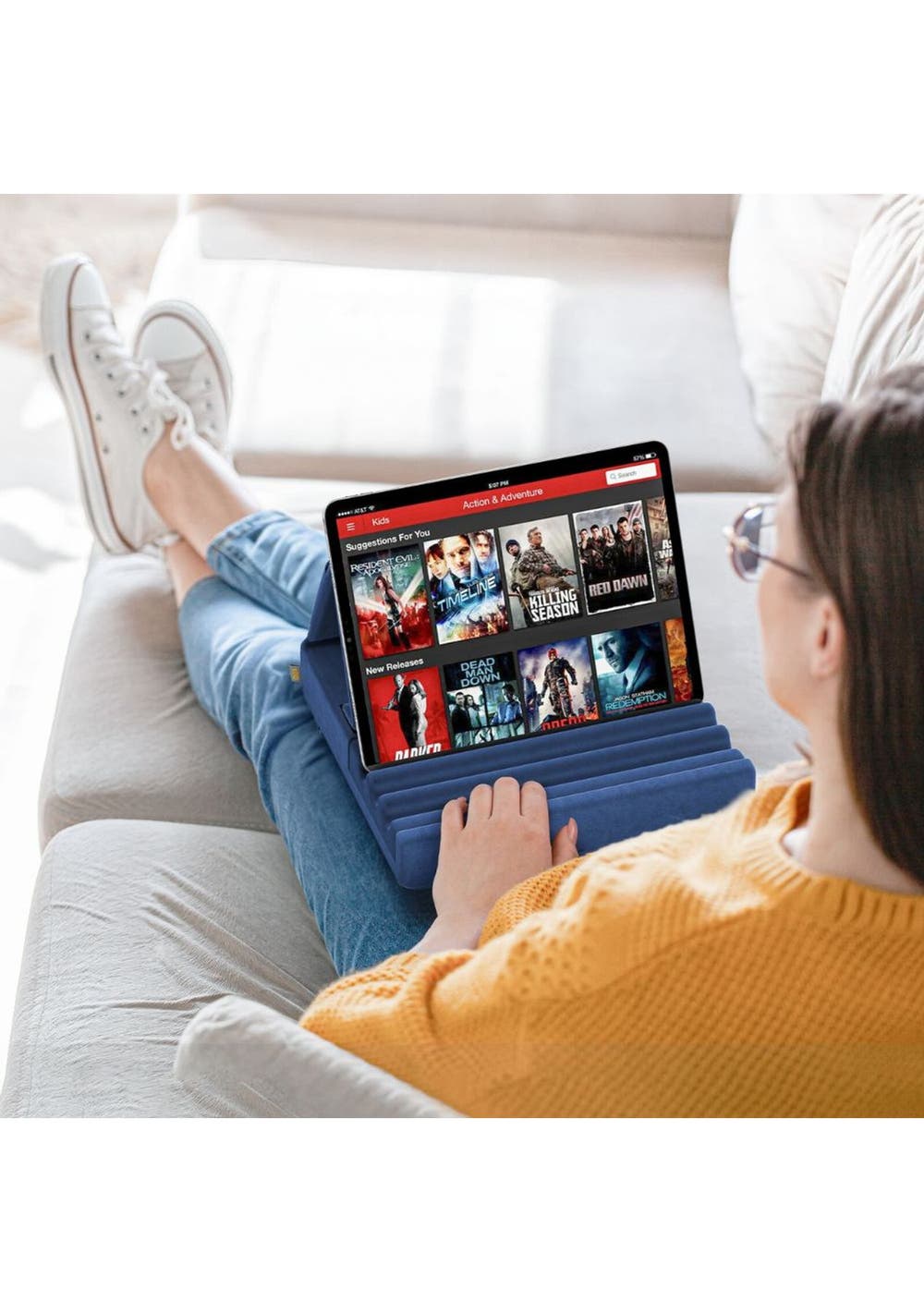 Product Description:The Tablet Pillow Holder offers a convenient and comfortable way to use your tablet on your lap, bed, or desk. Designed for versatility, this stand is foldable and lightweight, making it easy to take anywhere.With its soft pad dock, it provides a stable surface for your iPad Pro, ensuring a secure and ergonomic viewing angle. The built-in pocket offers space to store accessories, so everything you need is within reach.This holder also features a stylus mount, keeping your stylus secure and accessible at all times. Whether you're watching videos, reading, or working, it enhances your tablet experience by combining functionality with comfort.Perfect for home or travel, the KDD Tablet Pillow Holder is designed to enhance productivity and relaxation. It's an ideal companion for anyone seeking flexibility and ease while using their tablet.Product Specification:Material: PolyesterColor: Purple, Blue, Gray, GreenSize: 28.49 x 27.30 x 16.51cm / 11.22 x 10.75 x 6.5 inWeight: 0.49gFunction: Adjustable tablet standPackage Inclusion:1 x Tablet Pillow Stand