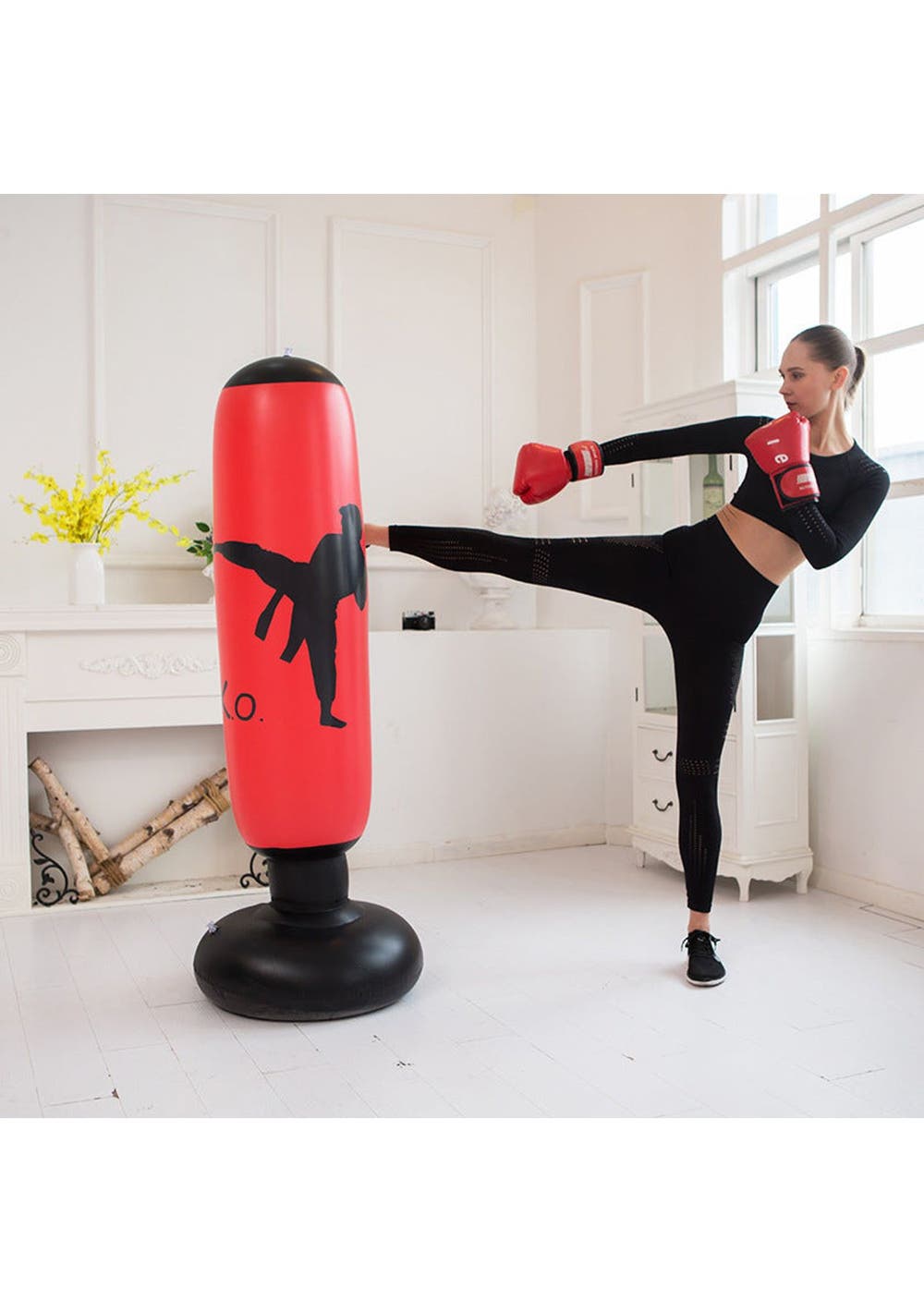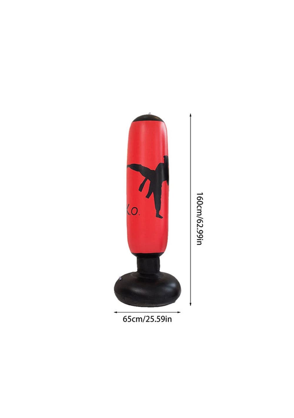 Product DescriptionÔªøIt has a height of about 160 centimeters and can bounce back quickly and smoothly, making it very suitable for exercise and play.ÔªøThe sturdy PVC material ensures safety and durability. Fill the boxing ring with soft rubber and seal it to ensure that there will be no water leakage or sand during exercise.ÔªøIt can be folded and stored, practical and safe. To use this punching bag, simply open the bottom, add water or sand to increase weight, and place it on the ground.ÔªøIt is an ideal children's boxing monitor because it has no risk of injury, can burn calories, and release stress.ÔªøÔªøÔªøProduct SpecificationÔªøMaterial: PVCÔªøColor: Red, BlackSize: 160cm*65cm*65cmÔªøWeight: 598gÔªøFunction: Boxing trainingÔªøÔªøPackage Inclusion1 x Boxing Bag