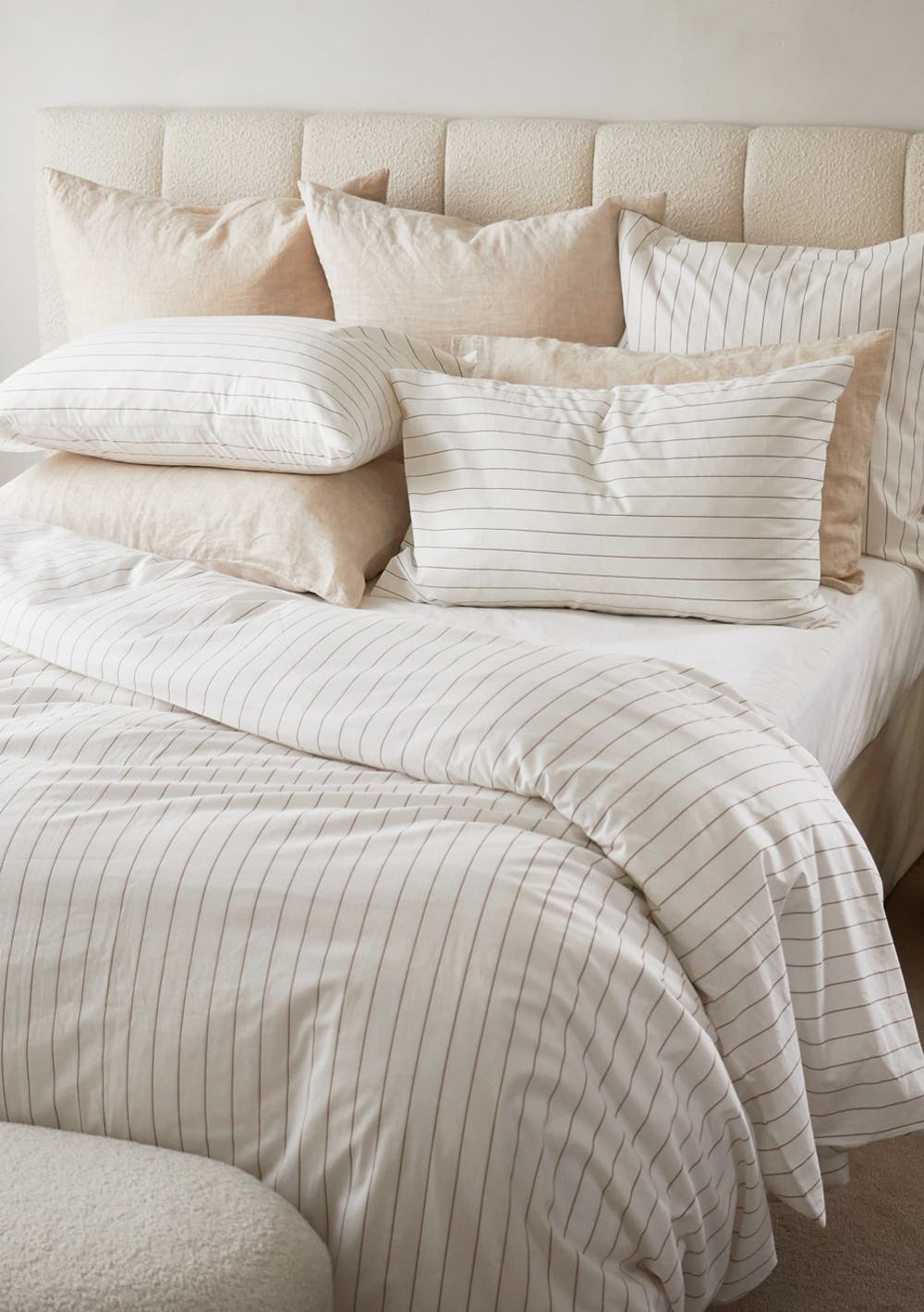 George Collective - 100% Stonewashed Cotton Duvet Cover Set - Queen - Mocha Stripe