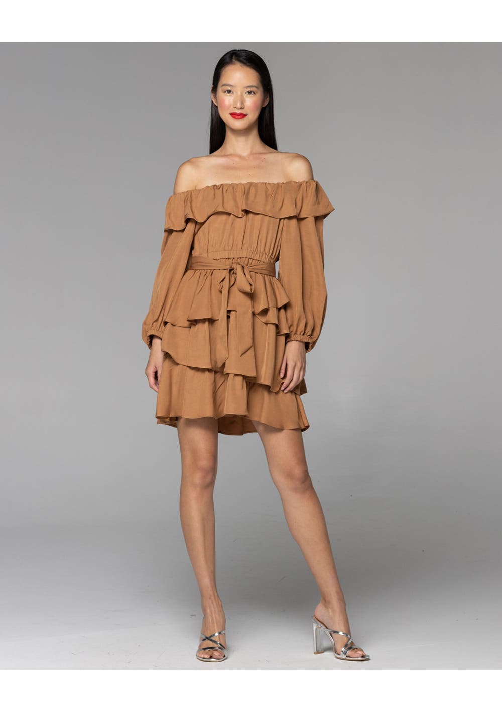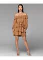 Fate - Heart & Soul Frill Neck Mini Dress - Caramel