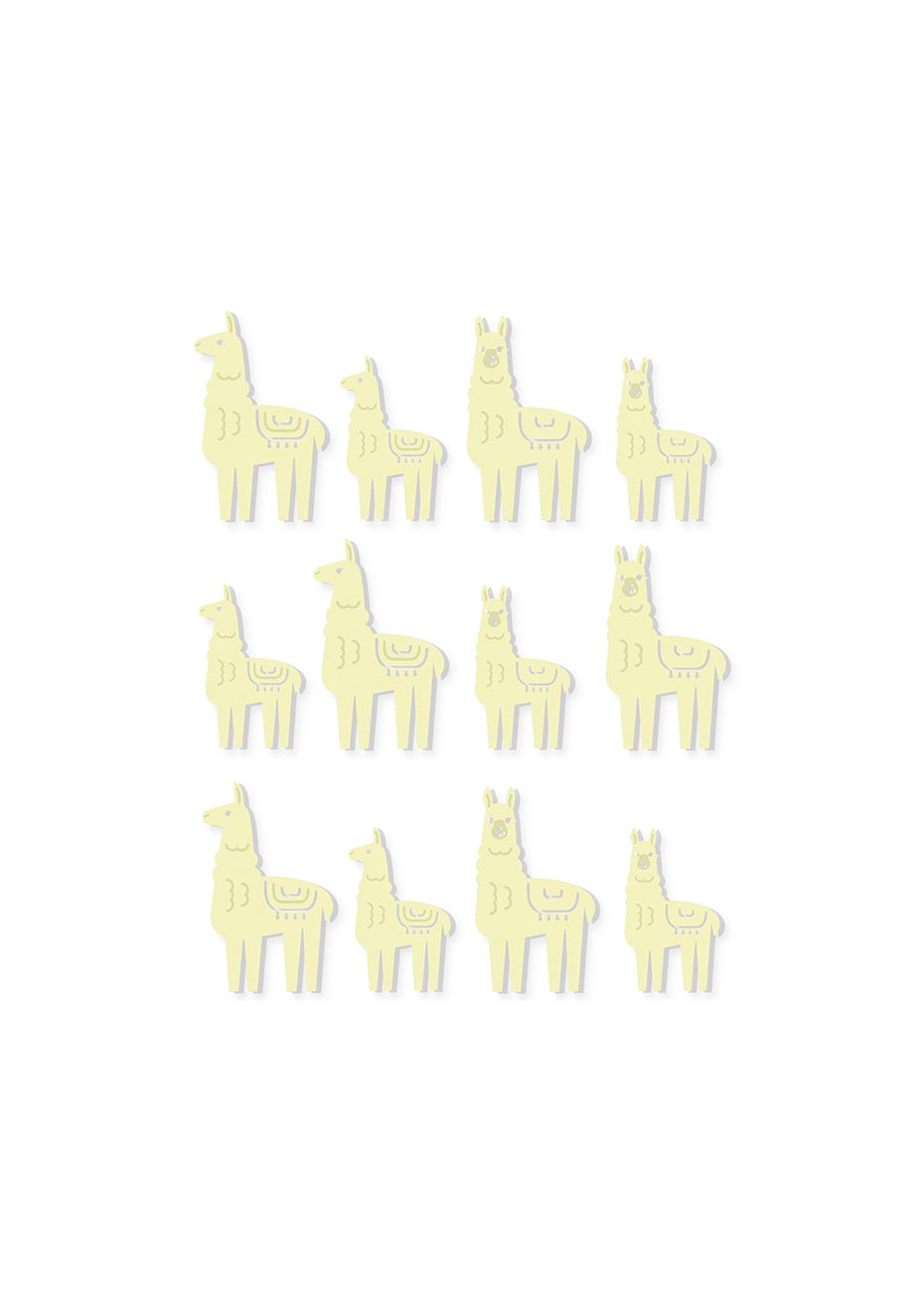 Stick these glow -in-the-dark Llamas on walls or ceiling to create a happy llama farm! Expose the llamas to a light source for a minute. Turn off the light and watch them glow. They will glow like magic in the darkness. Recharge them and they will glow again and again. The fun is unlimited.