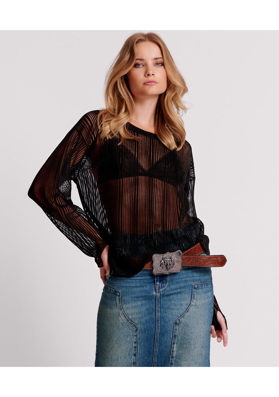 One Teaspoon - Black Ladder Stripe Sheer Knit Sweater - Black