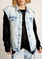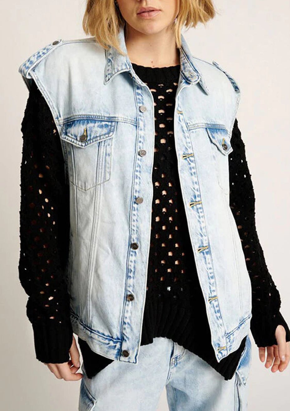 One Teaspoon - Depeche Blue Oversized Denim Trucker Sleeveless Jacket - Depeche Blue