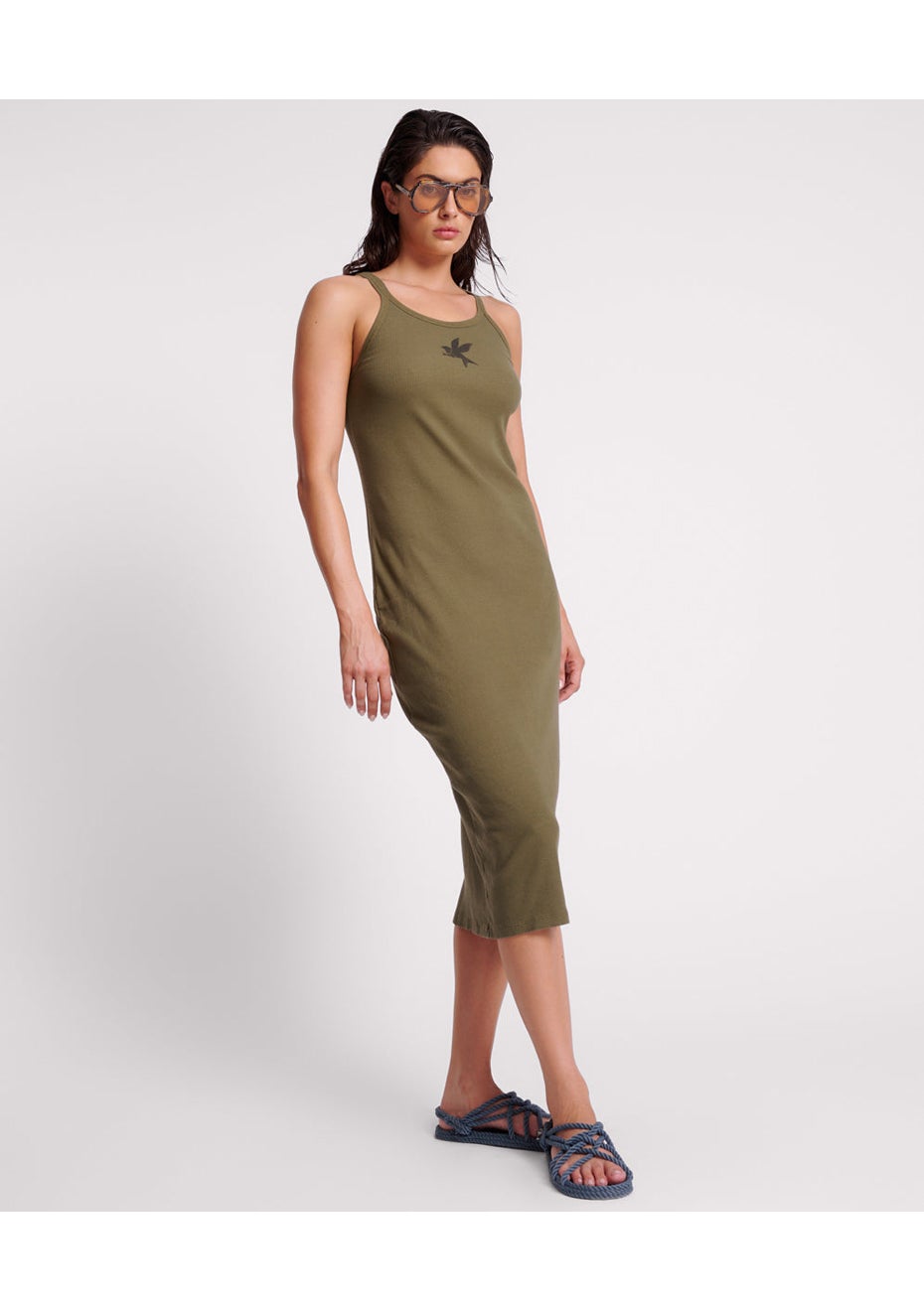 One Teaspoon - Khaki One Teaspoon Rib Singlet Midi Dress - Khaki