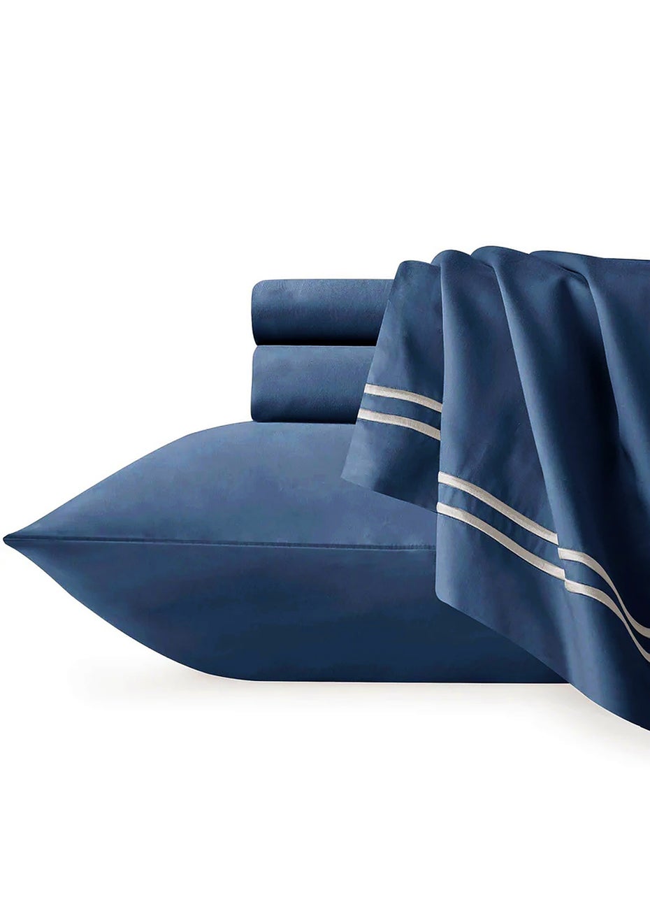 Renee Taylor Strada Embroidered 1000 TC Egyptian Cotton Euro P/Case Indigo
