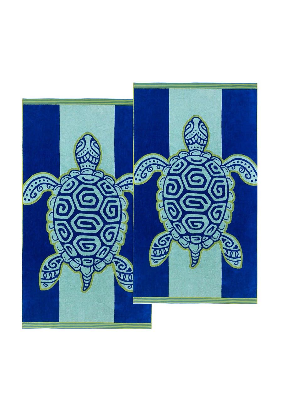 Renee Taylor 2 Pack Jacquard Velour Large Beach Towel 100 x 180 cms Turtle