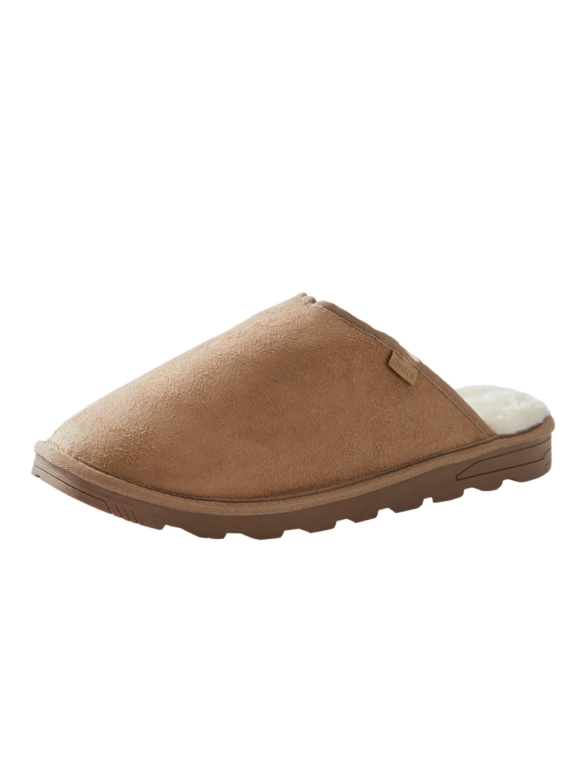 rivers - Mens Winter Slippers - Beige Mules - Slip On - Faux Sheepskin Shoes - Closed Toe - Cozy Fleece Lining - Casual Fashion - Warm Footwear