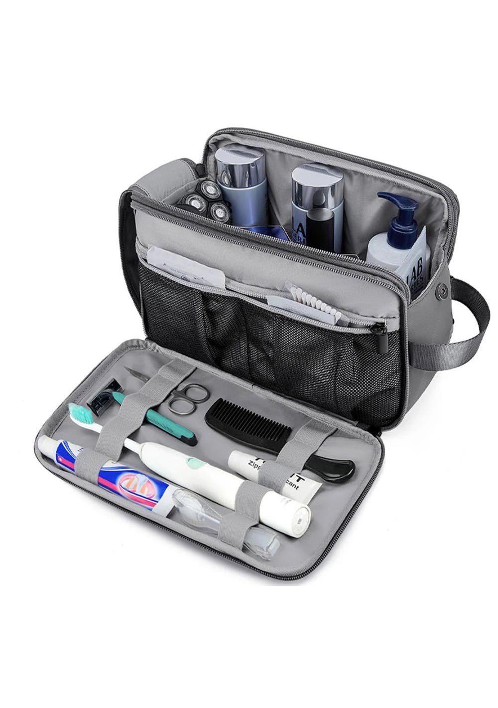 Product Description: Keep your toiletries and shaving accessories organized with this Men's Travel Toiletry Bag. Made of water-resistant material, it's easy to clean and provides protection from splashed water.With its spacious main compartment and elastic straps, this bag can hold bottles upright and keep your toiletries secure. The multiple pockets inside ensure all your essentials are organized and easily accessible.The front waterproof pocket allows you to keep wet and dry items separate, while the back panel provides a flat surface for efficient organization. The double zipper design offers quick access to the main compartment with a simple pull on the connected zip puller.This versatile bag is suitable for both home and travel use. Its unique design combines a toiletry bag, shaving kit, and makeup/cosmetic bag all in one, making it a convenient choice for any occasion.?Product Specification:Color: Black, Navy, Pink, GreyMaterial: PUWeight: 260gSize: 24 x 16 x 11.7 cmFunction: Toiletry Bag for MenPackage Inclusion:1 x Toiletry Bag