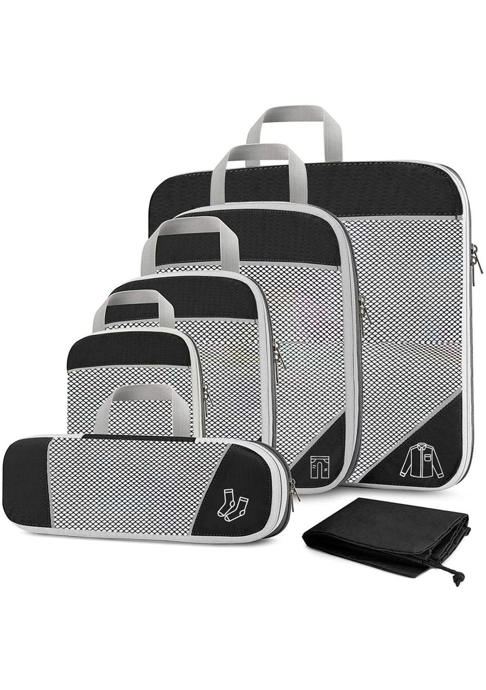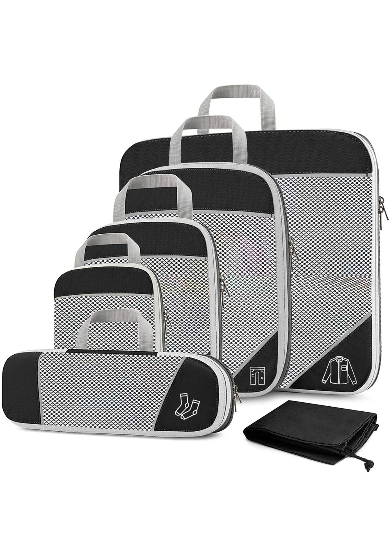Product Description: The packing cubes support a compression design which helps remove excess air, which can save 60% of storage space after compression. These travel compression bags can keep your clothes in order and can be easily retrieved during travel.The special feature of the packaging bag is that it is foldable. When not in use, the bags can be put into one bag to save space. Moreover, the fabric is not easy to wrinkle, and it will not affect your normal use after being placed in the folded state for a long time.This bag is made of premium-quality waterproof fabric, is easy to clean, and is odor-free. The zipper is smooth and durable, and the workmanship details can stand the test, a great must-have during travels.The set comes in different sizes of packing cubes for different packing purposes. This enables you to separate your clothes according to type for your convenience. ?Product Specification:Color: Black, Blue, Green, Grey, Navy Blue, RedMaterial: NylonSize: XL- 40 x 40 x 9cm, L- 30 x 40 x 9cm, M- 25 x 35 x 9cm, S- 20 x 30 x 9cm, XS- 35 x 10 x 9 cm, Drawstring Pocket- ?47 x 35cmWeight: 600gFunction: Packing Cubes?Package Inclusion:5 x Packing Cubes (XL, L, M, S, XS) 1 x Drawstring Pocket