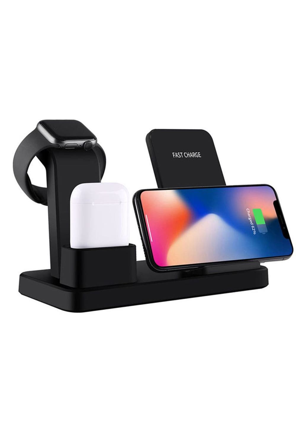 3-in-1 Fast Charging Wireless Mobile Phone Charging Station(USB Power Cable) - Black