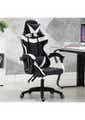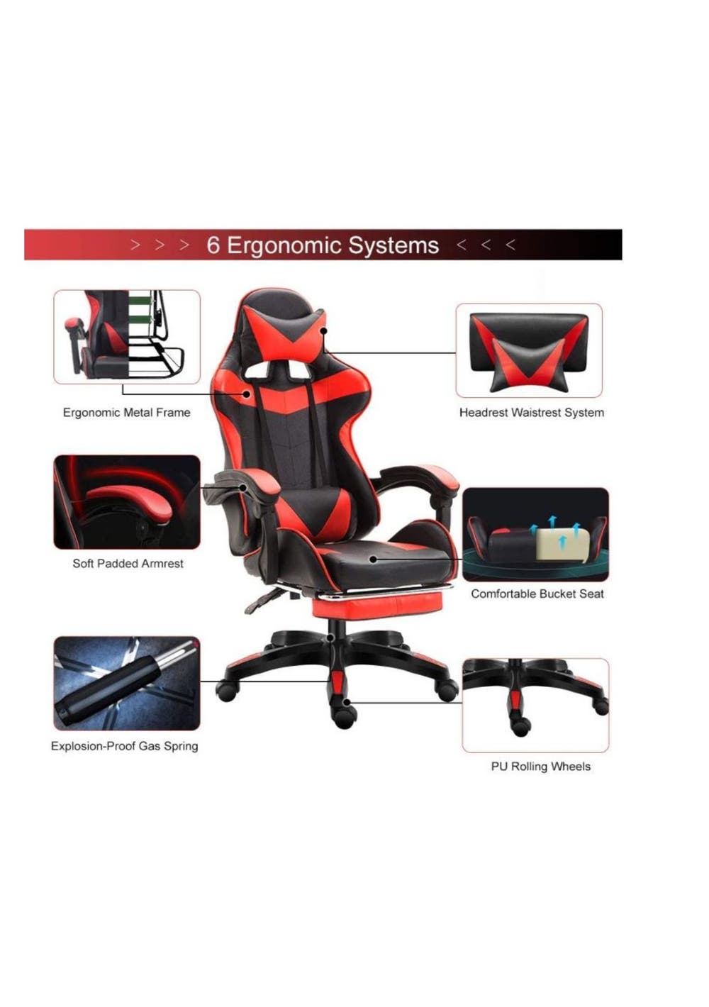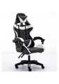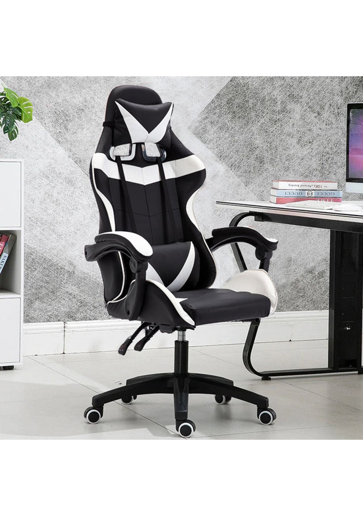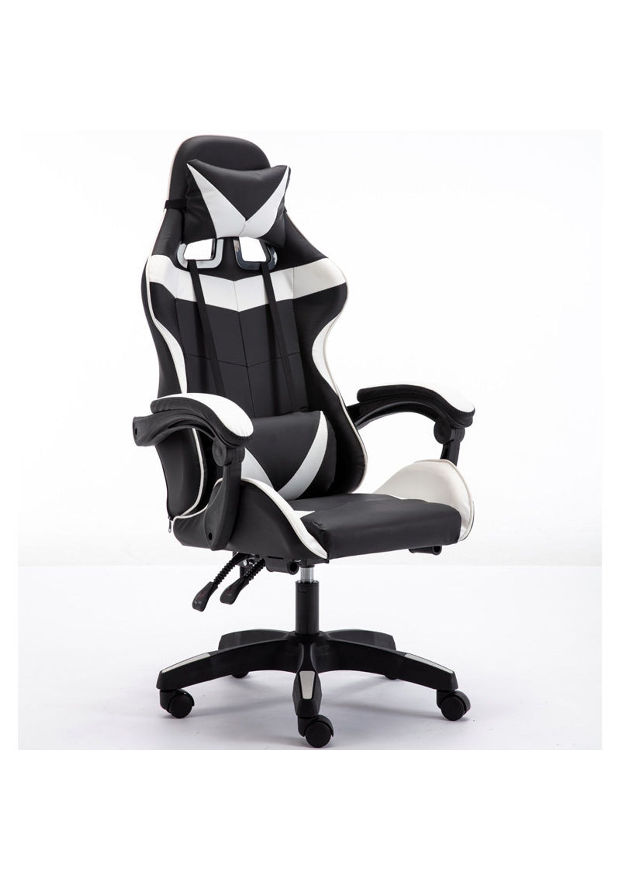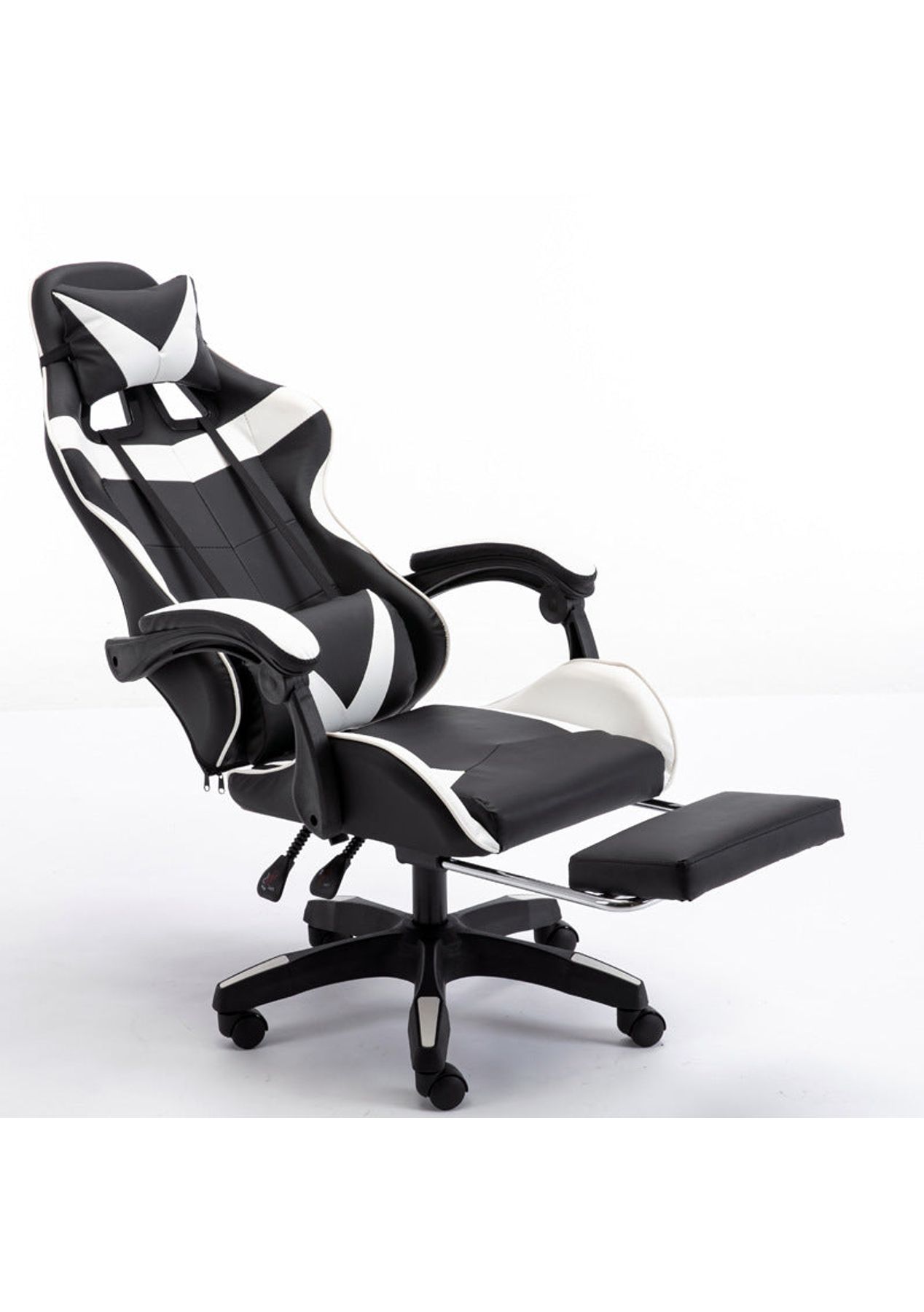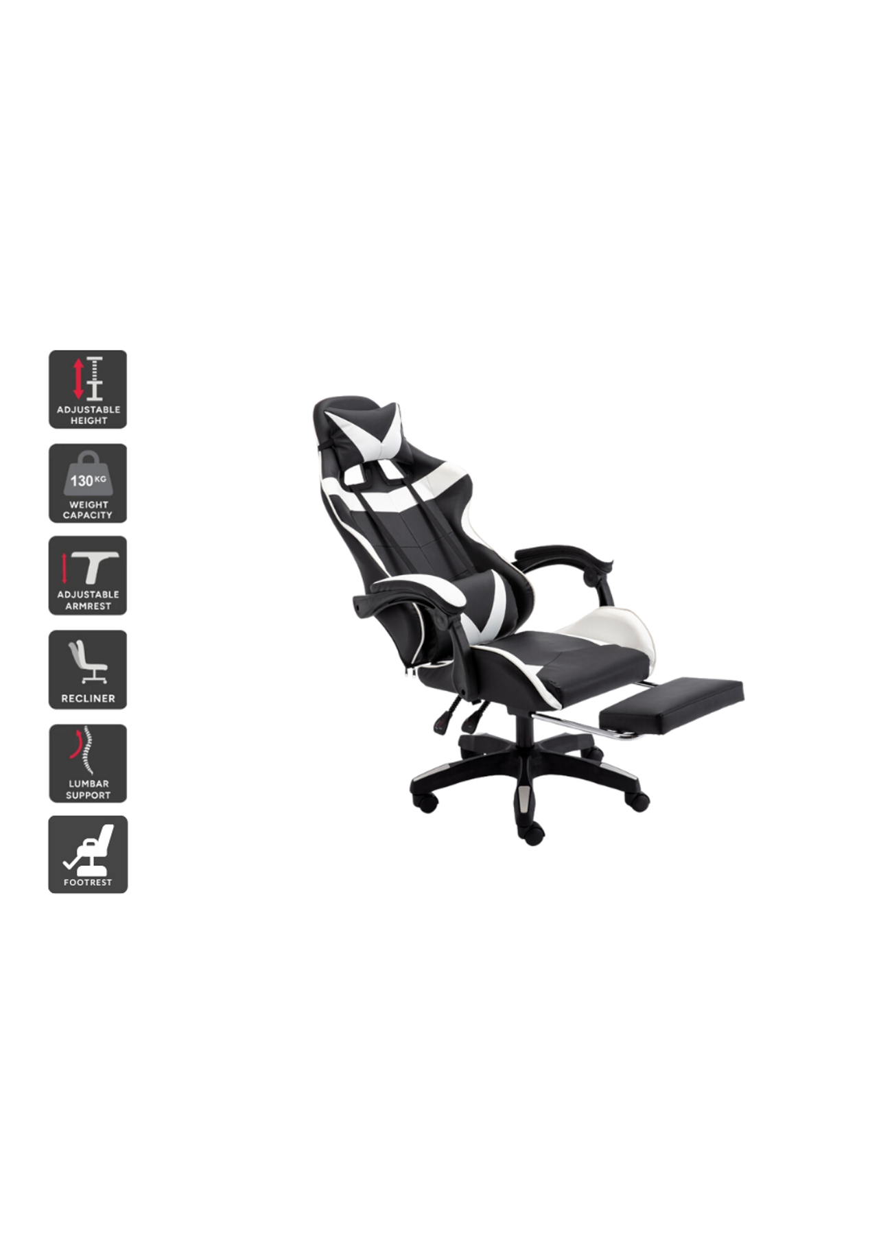 The Gaming Chair with Footrest is the ultimate gaming chair for hardcore gamers. Designed with marathon gaming sessions in mind, the Gaming Chair is as comfortable as your favourite sniper rifle and twice as shiny. Adjustable armrest with up and down function gives you the freedom to find the perfect height for your arms to relax. With the adjustable backrest and footrest, you can change it to the most comfortable angle for you to lean back. With luxurious padding in all the right places and an extra pillow supporting your back, you'll never game more comfortably.Features:- High, supportive back- Ultra-soft padding- Synthetic leather upholstery- 90-135° Recliner Function- Adjustable height and footrestStay comfortable during long hours of gamingLean backwards to rest and relaxSpecifications:Material: Quality Faux Leather (PU), Nylon Base, Footrest with Faux Leather PaddingMaximum Weight Limit: 140kgMultipack Options: SingleSeat Material: PU LeatherColour: Black & WhiteChair Type: Gaming ChairGaming Chair Dimensions:Back Height: 80cmDimensions: 70x 70 x 125 - 133 cmSeat Height: 40-50cmWeight: 18kgWidth: Seat: 48cm x 38cmBlack & White Please Note: Colors may vary slightly due to lighting and different displays and settings. All dimensions are manually measured and may vary by 1-2 cm.