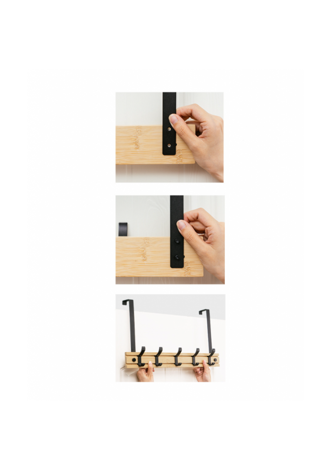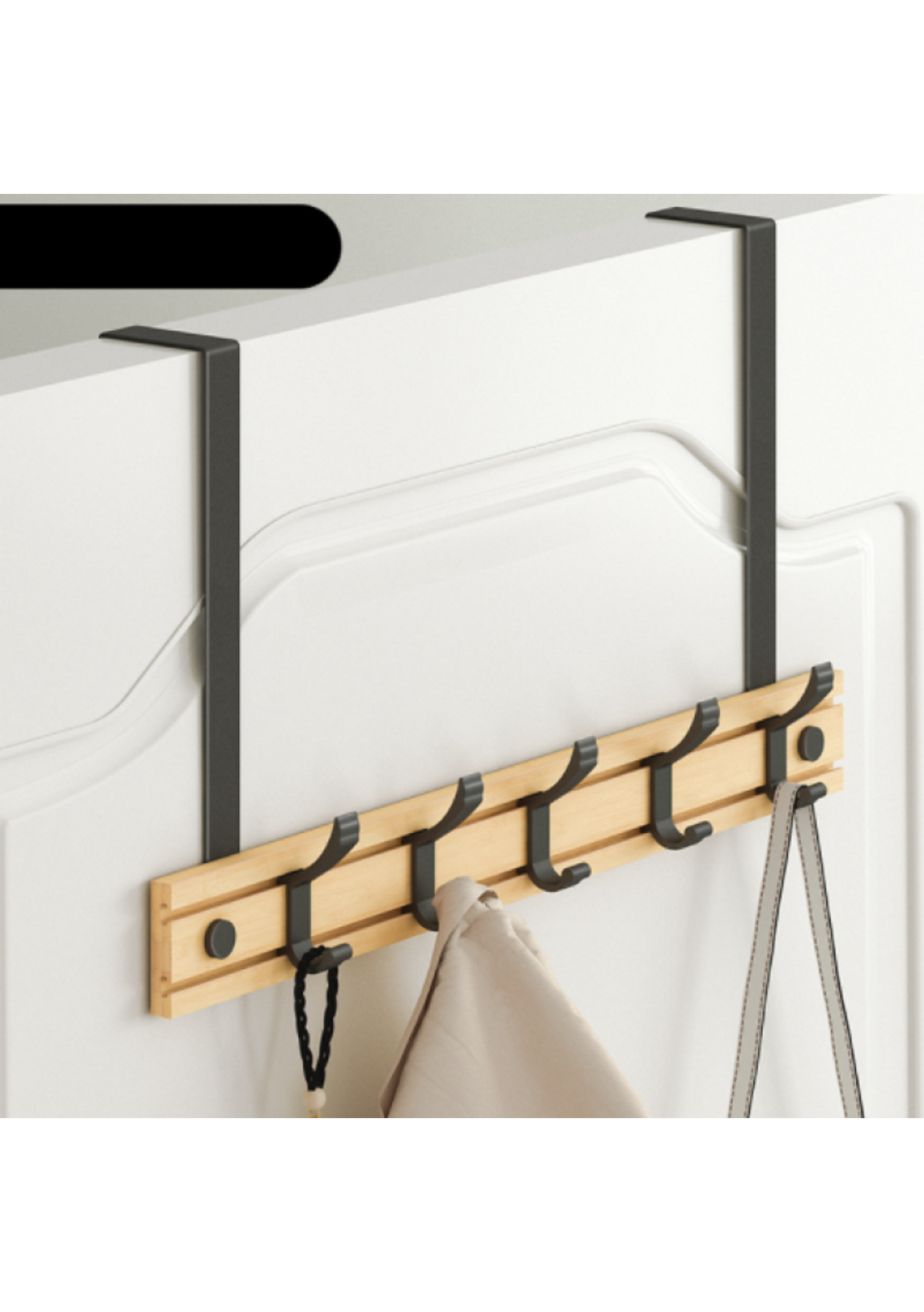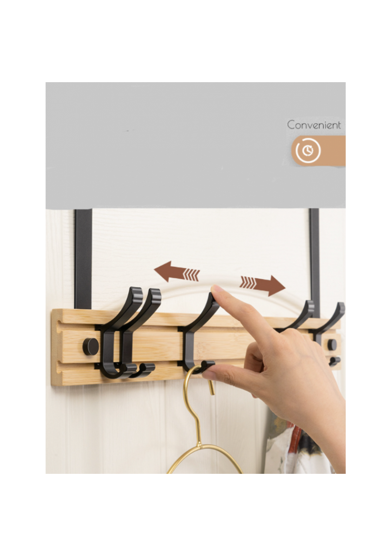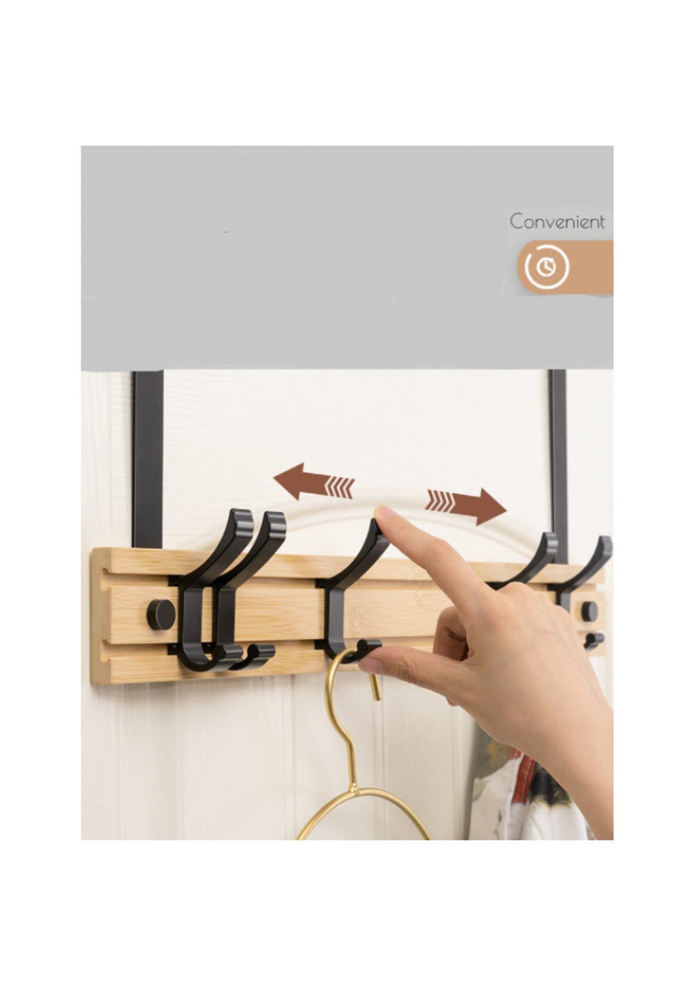 Creates Space Where You Need it Most: This 5-hook door hanger takes advantage of unused space on your door. It adds extra storage for hanging towels, coats, bags, hats, scarves, jewelry, and other accessories without taking up too much space. It is perfect for your living room, bedroom, bathroom, kitchen, or office.The most important change than traditional coat racks is the hooks is movable, when you hanging large things, change the hooks distance to avoid the large item hiding other hanging things, makes your room looks more tidy and attractiveSpace Saving 2 in 1 Design: This door hook hanger fits all standard interior doors up to 3.5-4.5cm thick. To ensure your door closes smoothly with this hook over door hanger, be sure that the gap between the door and the frame is about 2mm (a coin’s thickness).Solid Construction: This door coat hanger features a natural bamboo board with sturdy metal pegs. The pegboard has a smooth surface while the pegs come in a round shape, allowing you to store a variety of essentials and accessories without worrying about damaging them. Best of all, this wooden door each hook can holds up to 5kg of weight.Dimensions:Dimensions:50x6x1.2 cmPackage size: 53.5x9x7cmWeight: 0.45kgMaterial: WoodColour: Burly wood
