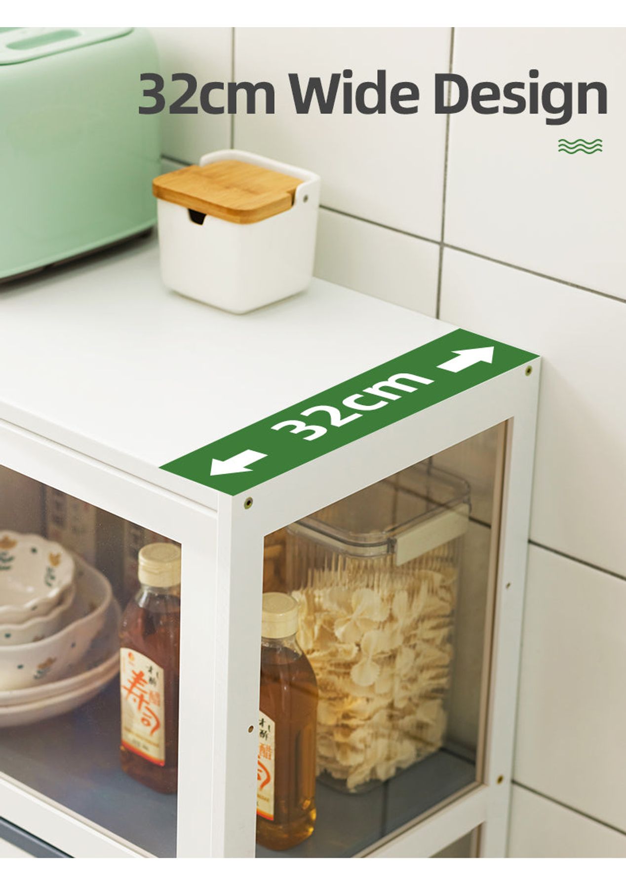 3 Tier Kitchen Storage Cabinet with coverThe 3 Tier Kitchen Shelf with Cover is a versatile and space-saving storage solution for your kitchen. With four sturdy shelves, it provides ample room to organize and display your kitchen essentials, from dishes and cookware to spices and small appliances. The included cover helps keep your items dust-free and protected, making it perfect for both open and closed storage options. This sleek and functional shelf unit is a must-have for anyone looking to maximize kitchen organization while maintaining a clean and tidy appearance.Features:- Four-tiered Design: This shelf offers four spacious tiers, providing plenty of space for storing kitchen items like dishes, pots, pans, utensils, or even small appliances.- Durable Construction: Built with high-quality materials, it's designed to withstand the weight of your kitchen essentials, ensuring long-lasting durability.- Adjustable Shelving: Some models may come with adjustable shelves, allowing you to customize the spacing to accommodate items of various sizes.- Cover Included: The included cover keeps your items protected from dust, dirt, and potential splatters, maintaining a clean and hygienic kitchen.- Versatile Use: It's not limited to just the kitchen; you can use it in the pantry, garage, or any room where additional storage is needed.- Space-saving: Its vertical design maximizes space utilization, making it ideal for smaller kitchens or spaces with limited storage.- Easy Assembly: Many models are easy to assemble without the need for special tools, ensuring a hassle-free setup.- Stylish Design: The shelf's aesthetic design can complement a variety of kitchen styles, from modern to traditional.- Easy Maintenance: Cleaning is a breeze with wipeable surfaces and materials that resist stains and spills.Specification:Size(WDH): 60 x 32 x 106cm Material: Bamboo, plastic Package included:1 x 3 Tier Kitchen Shelf with cover
