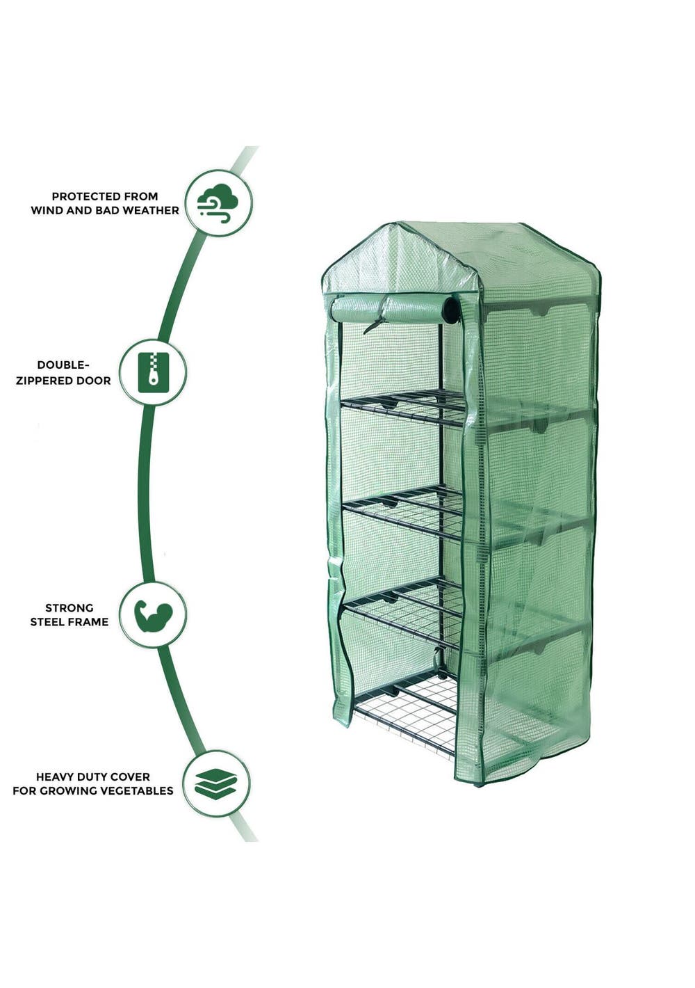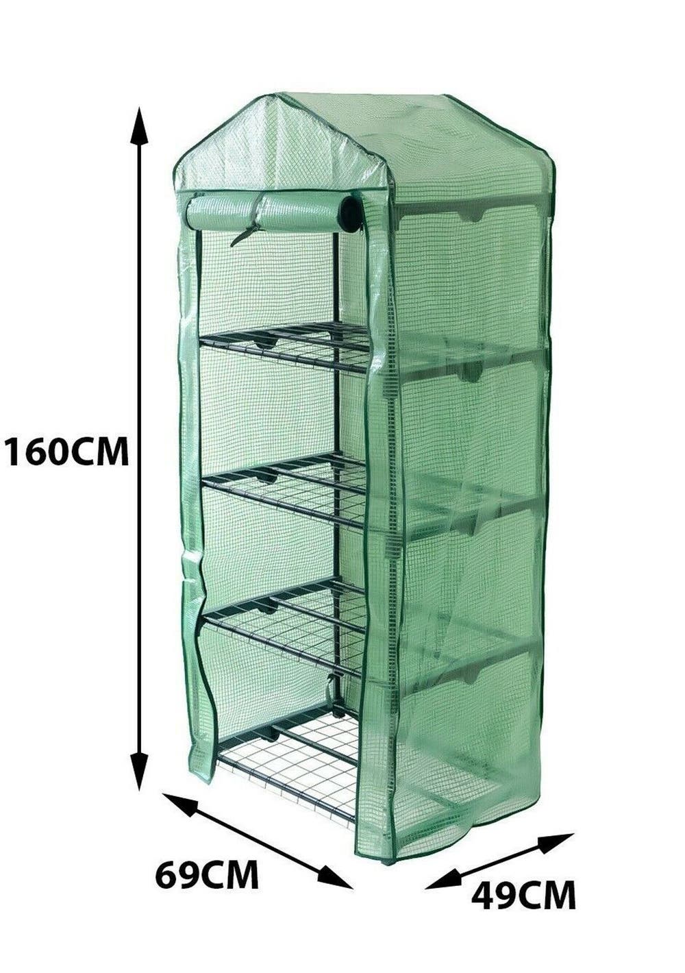 This greenhouse is waterproof, prevent water from seeping inside. It's transparent design let the plant can have more sunlight. The zip-up front panel of the grow-house can be rolled up for ventilation and to allow light into the structure. The temperature of the greenhouse can be easily regulated by simply varying the opening of the large double zipper door. The weatherproof cover is easily attached to the steel frame with help from built in loops. Furthermore, the gabled roof allows rain to run right off of the greenhouse instead of accumulating and potentially damaging your plants. You can use it in many places, such as a garden, balcony and other outdoor living space.Features:Overall Size: H160cm x W69cm x D49 cmIncludes 4pc steel shelves, 1.8mm steel wire with powder coatingGreen powder coated steel tube frame construction with PP connectors.Through the large roll up door with two zippers.Roll up front for easy access and ventilation.Quick and Easy Assembly required.Protection for Plants in any weather.Brand New Material: Steel shelf, plastic connector, PVC