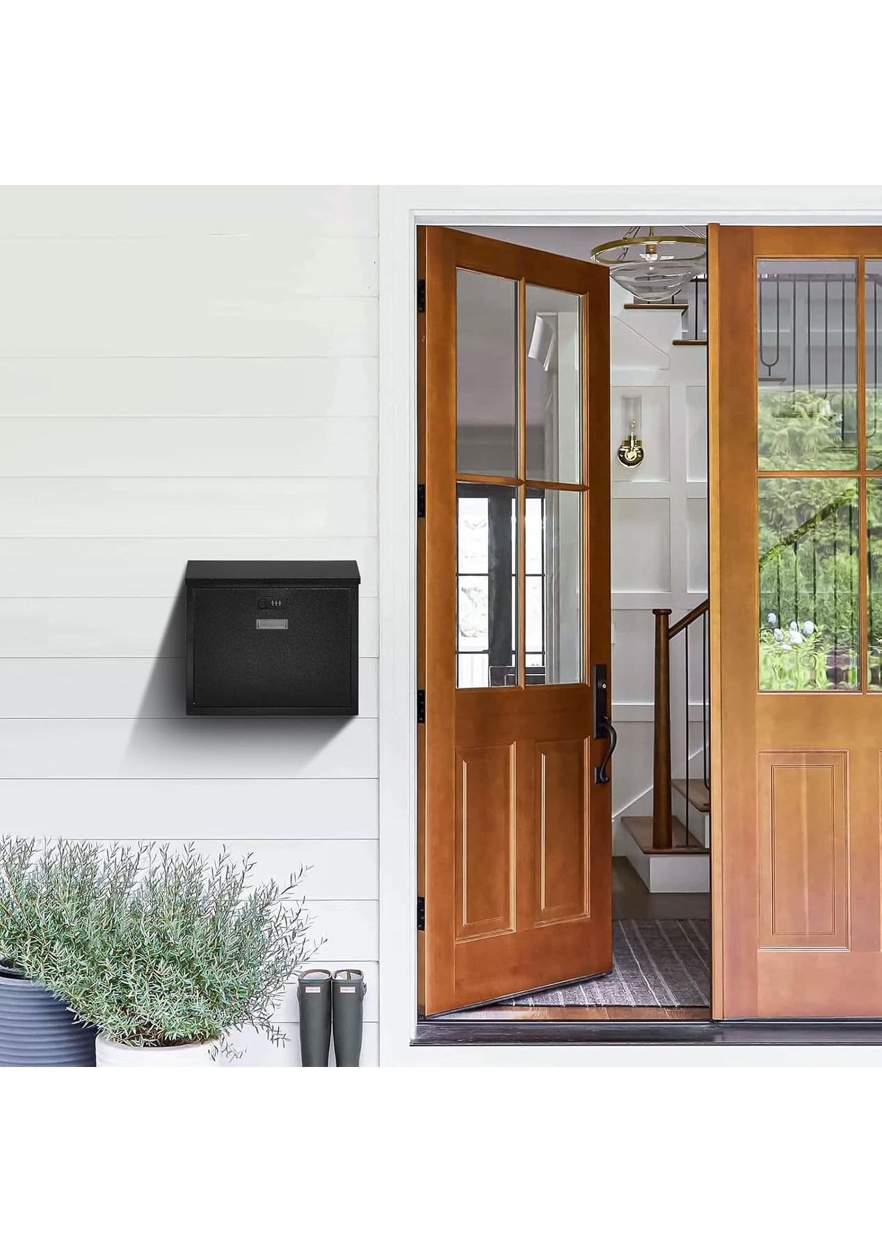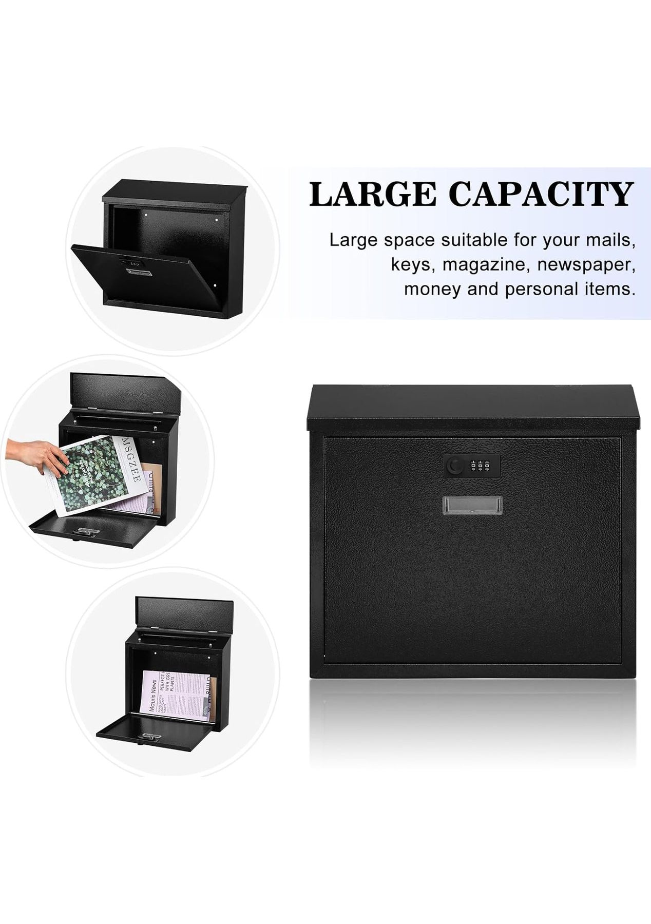 Wall Mounted Mailbox Combination Lock Ultimate Security for Your MailProtect your important mail effortlessly with our Wall-Mounted Secure Mailbox. Designed to provide high-security protection and safety storage, this mailbox is made of solid, sturdy metal that withstands heavy rain with its powder-coated finish. It's both beautiful and modern, ensuring your home stays stylish while keeping your deliveries secure. Convenient Access AnytimeExperience hassle-free mail checking with the convenient view window of our Wall Mounted Mailbox Combination Lock. The independent combination lock adds an extra layer of security while offering easy access to your mail, notes, votes, or money. Easy installation is guaranteed with pre-drilled holes and included mounting hardware, allowing you to set it up quickly and effortlessly. Durability Meets FunctionalityOur Wall-Mounted Mailbox with Code Lock is built to endure harsh weather conditions, ensuring durability and longevity. With a beautiful spray model or baking varnish finish, this mailbox is not only functional but also enhances your outdoor aesthetic. Enjoy our all-weather service, and trust that your mail is in safe hands. Specifications:Locking mechanism: 3-number combination lockDimensions: 360 x 320 x 100mmInstallation: Pre-drilled holes, mounting screws, and wall anchor includedMaterial: Solid and sturdy metal Package included:1 x Mail Box1 x Manual