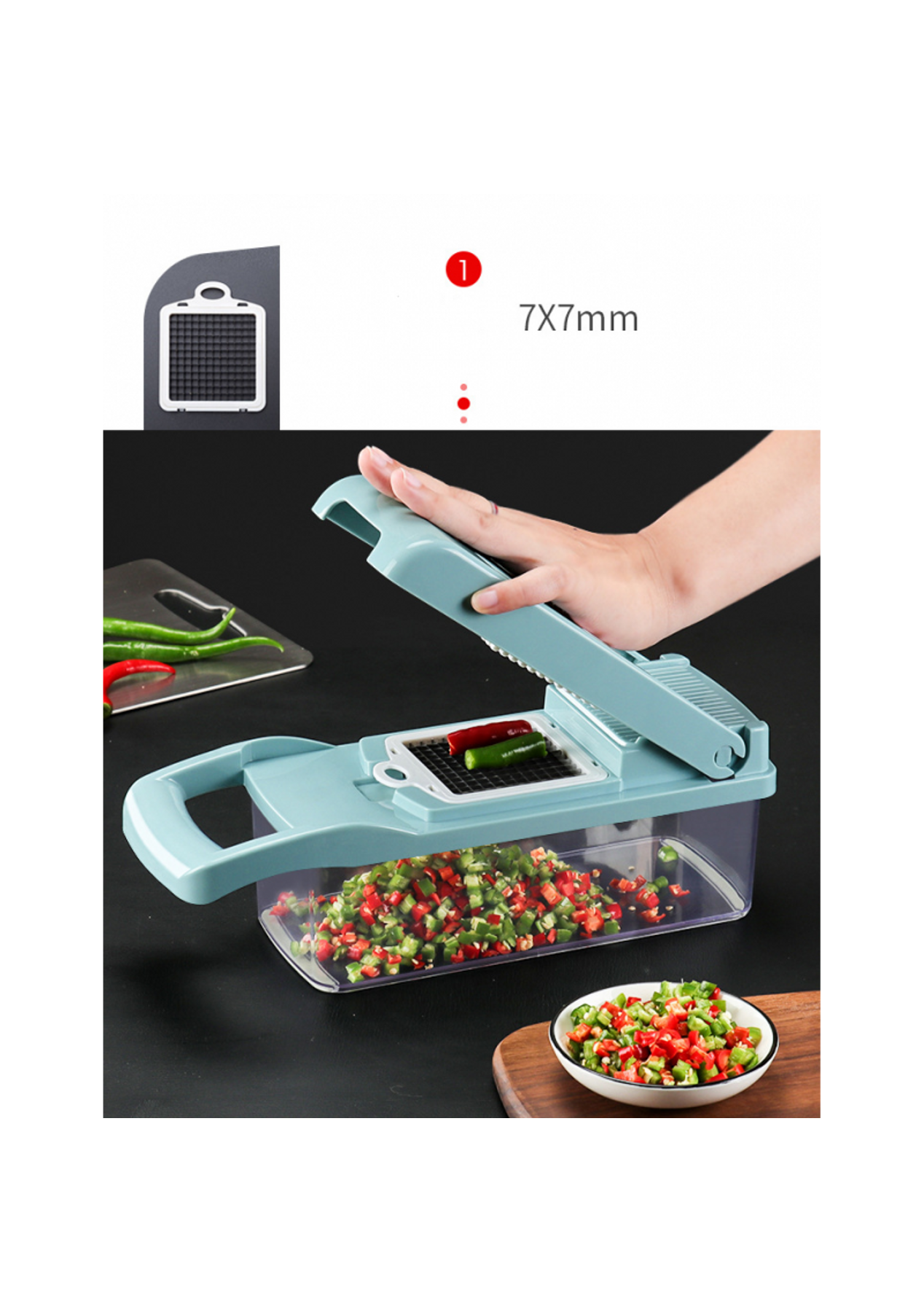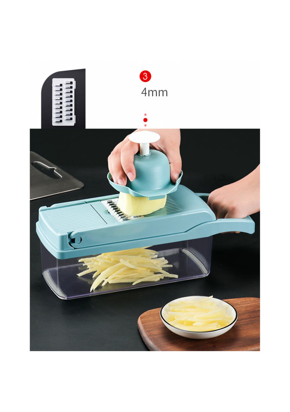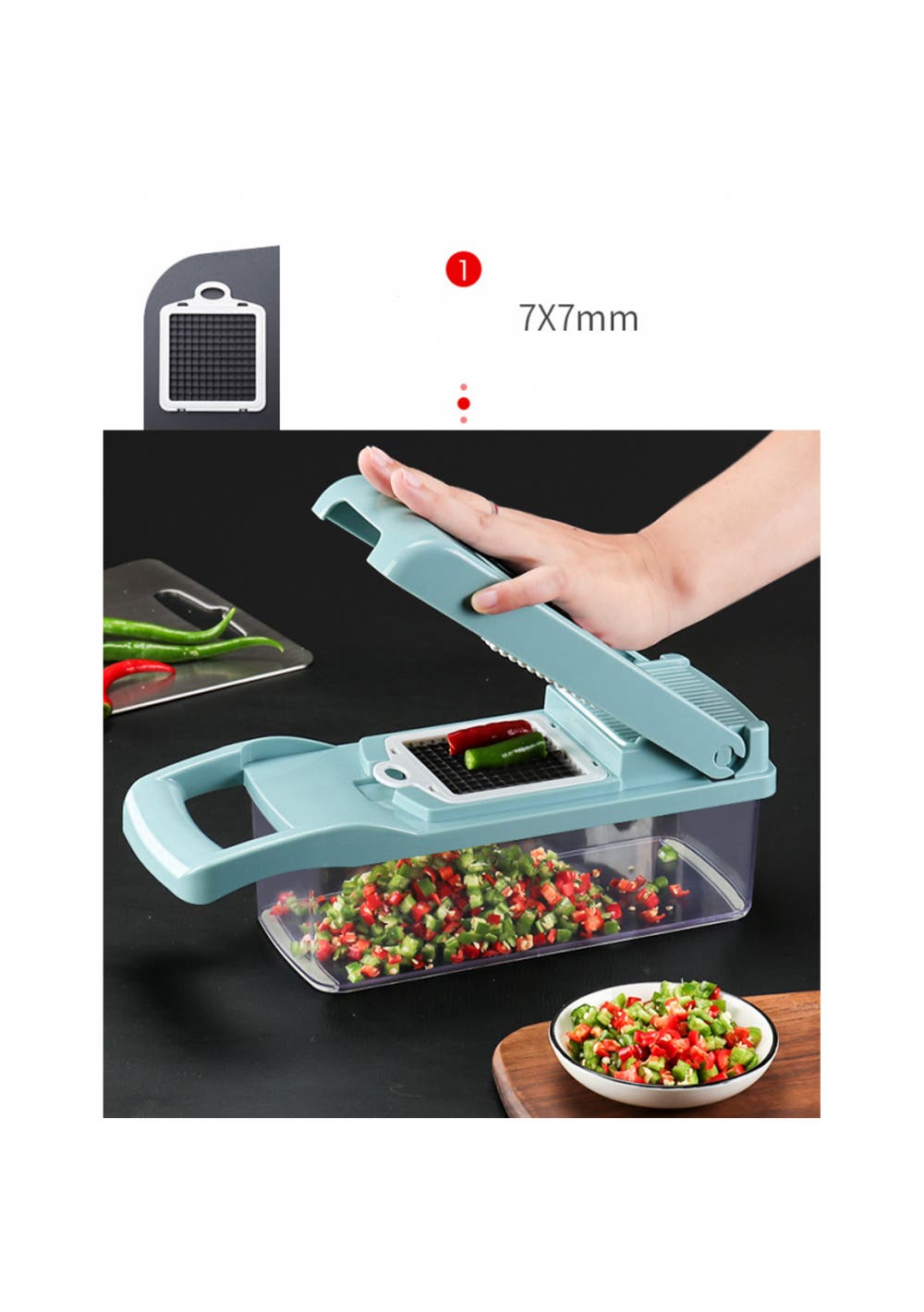 - Multifunction Kitchen Gadget: This practical kitchen gadget can shorten your prep time to just a few minutes. All vegetables can be prepared with this tool.- Highly Flexible Kitchen Tools: These flexible kitchen tools can chop onions, tomatoes and cabbage to make salsa, or cut potatoes into slices.- Improve Your Health: With this set of tools, you can escape the fast-food trap, cooking will be no longer messy. Enjoy healthy eating habits, this vegetable chopper tools will be your bestSpecification:Product dimensions: 32.2x11.3x11.3cmPackage size: 36x12x12cmWeight: 830gMaterial: PlasticColour: Grey