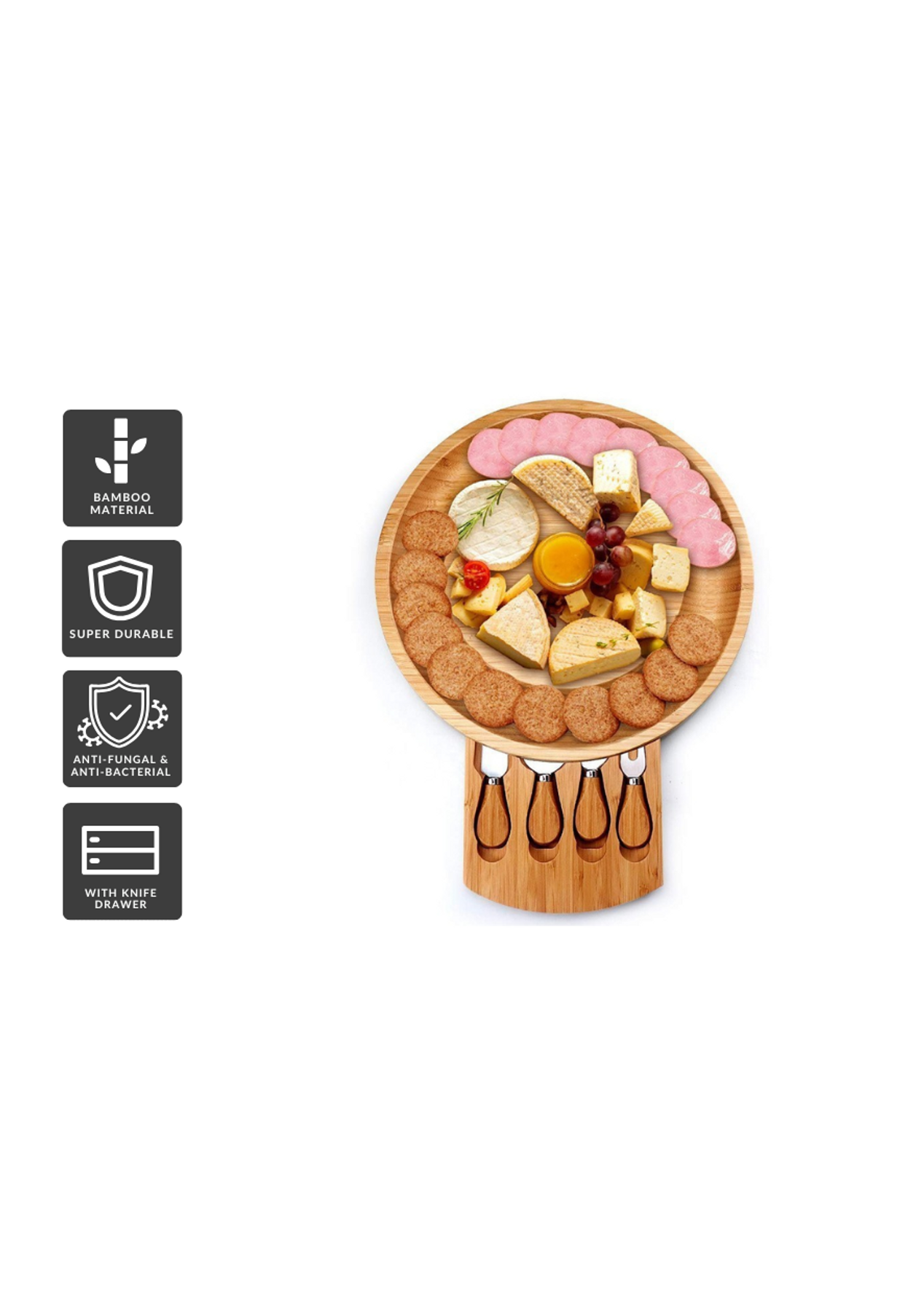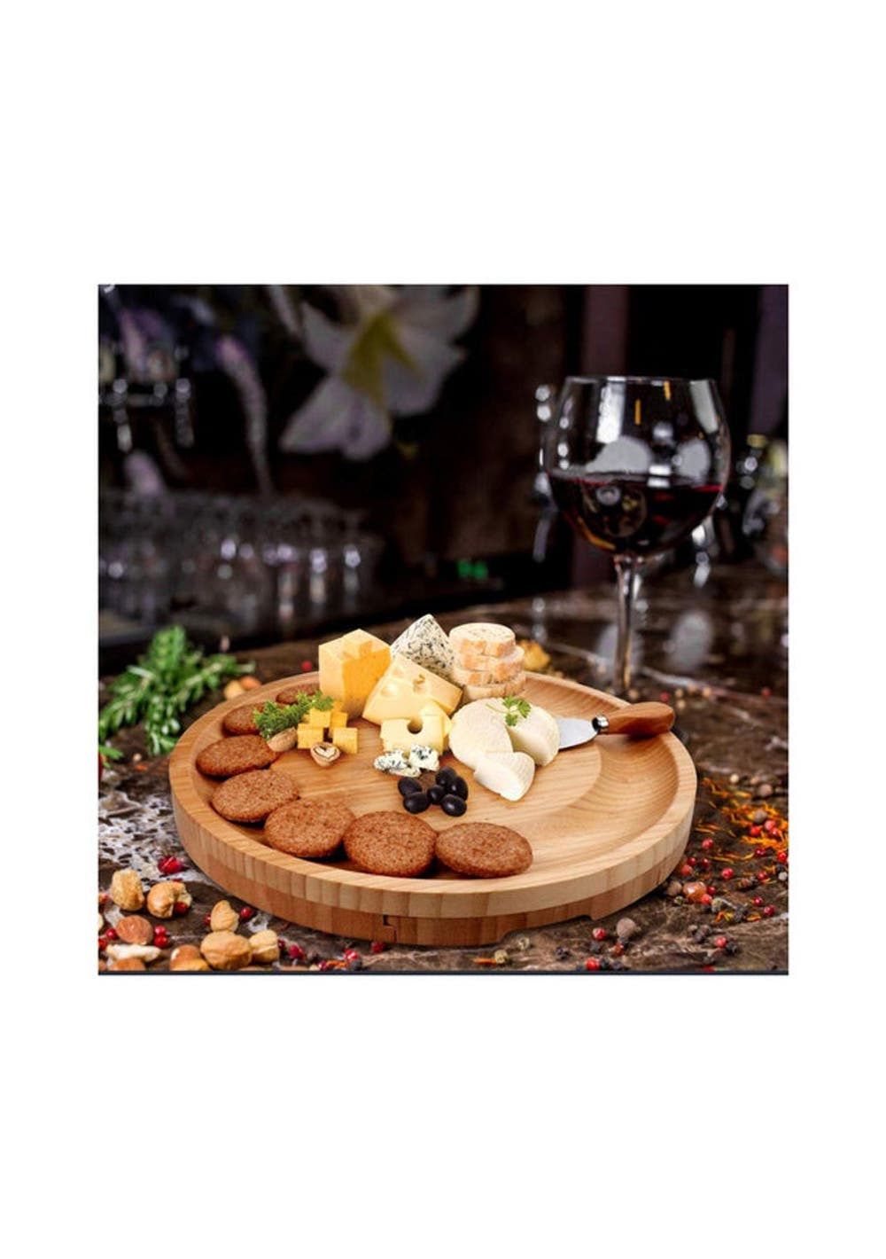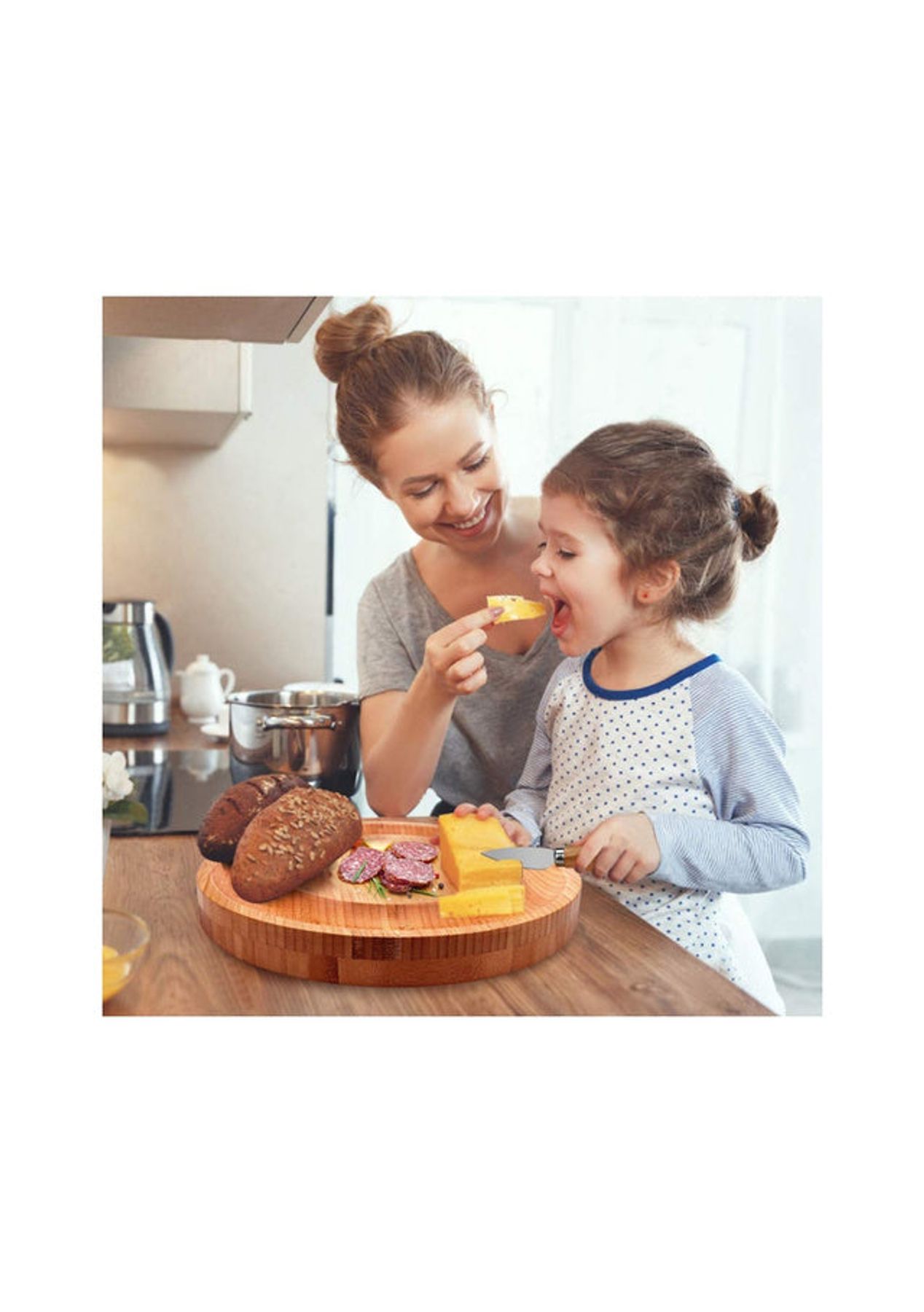 Yael Bamboo Cheese Board with Cheese Knives Never Buy Another Charcuterie Board AgainTransform your gatherings with our Circular Charcuterie Board, expertly crafted for durability and style. Enjoy a generous 25cm surface with smooth, splinter-resistant edges, perfect for showcasing your favorite cheeses and charcuterie without the hassle of cleanup or wear. Impress Without The MessElevate your entertaining with our Round Cheese Platter Set, featuring easy-to-clean, non-porous surfaces and built-in grooves to keep everything in place. The set includes a bamboo cheese board for your cheeses and a 4-piece knife set stored in a sleek hidden drawer for convenience and elegance. A Gift that WowsDelight your loved ones with our Bamboo Cheese Serving Board and Knife Set, ideal for every occasion from housewarming to birthdays. With unique hidden handles for easy carrying and a design that encourages creativity, you’ll be the go-to gift-giver, creating lasting kitchen memories. Specifications: Diameter: 25cmMaterial: BambooKnife Set: 4-pieceFeatures: Hidden drawer, smooth edges, non-porous surface, grooves for stability. Package included:1 x Yael Bamboo Cheese Board4 x Cheese Knives