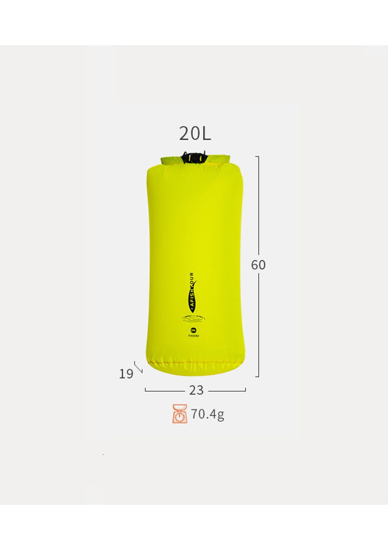 Product Features:- 70D nylon diamond grid, effective waterproof and more airtight- Lightweight and portable. The waterproof bag is light in weight and can be folded into a small size for easy carrying.- Wide range of uses: suitable for storing clothes, books and money. Very suitable for canoeing, boating, camping and swimming- Adopt high-quality buckle, the material is strong and durable, more solid- Fine stitching, stronger and more durable, heat-sealed, no air leakage, no water leakageSpecification:Size: 60x23x19cmCapacity: 15LAvailable Colors: Yellow and BlackWeight: 70.4gMaterial: Nylon